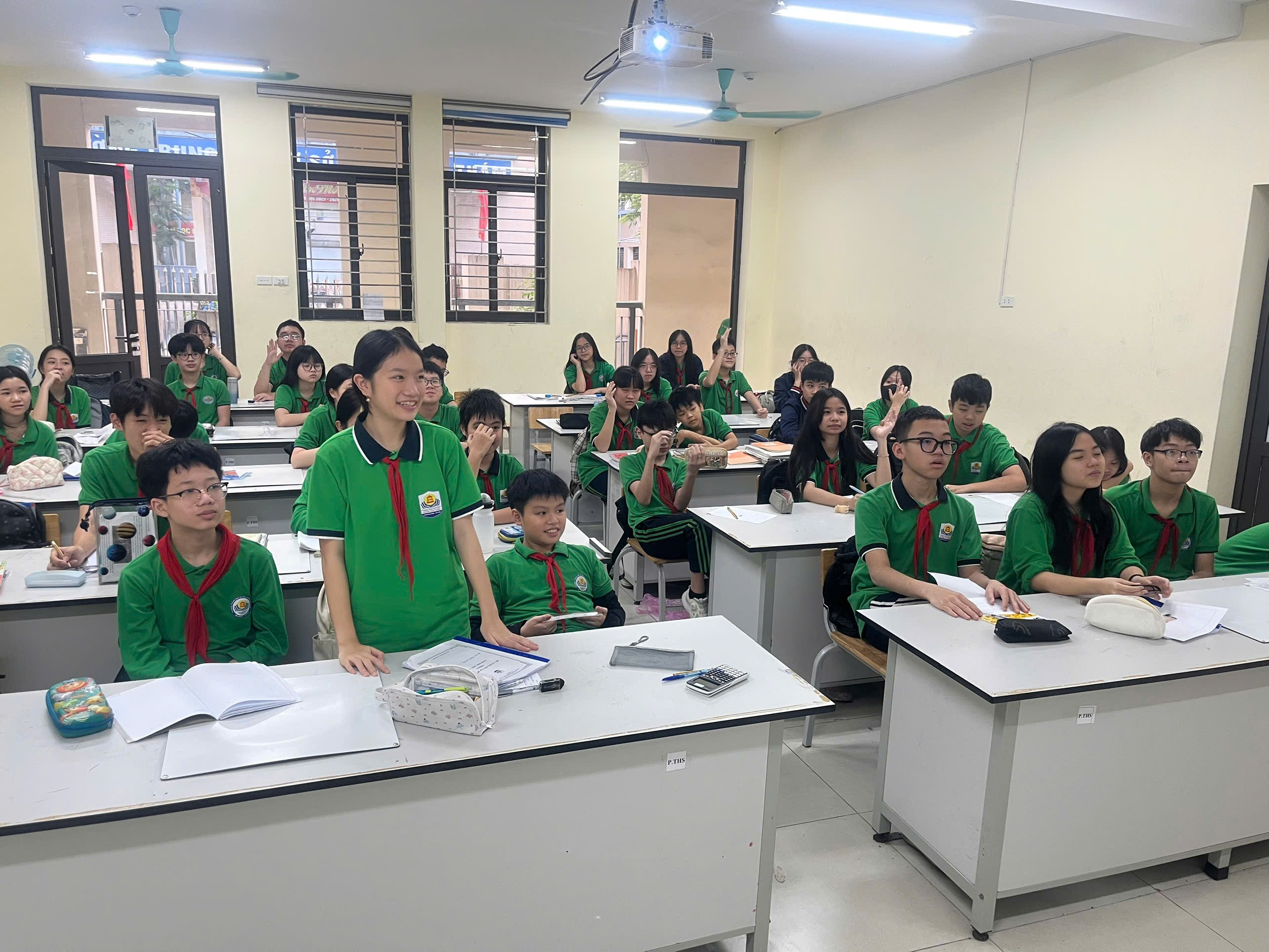 Sau đó, bạn Bảo Ngọc đã đặt ra những câu hỏi nhỏ nhằm giúp các bạn trong lớp củng cố và ghi nhớ kiến thức vừa được tìm hiểu. Hoạt động này vừa mang tính chất như một trò chơi, vừa là cách học tập tích cực, giúp cả lớp tiếp thu kiến thức một cách hiệu quả, tạo không khí sôi nổi và hứng thú trong giờ học.