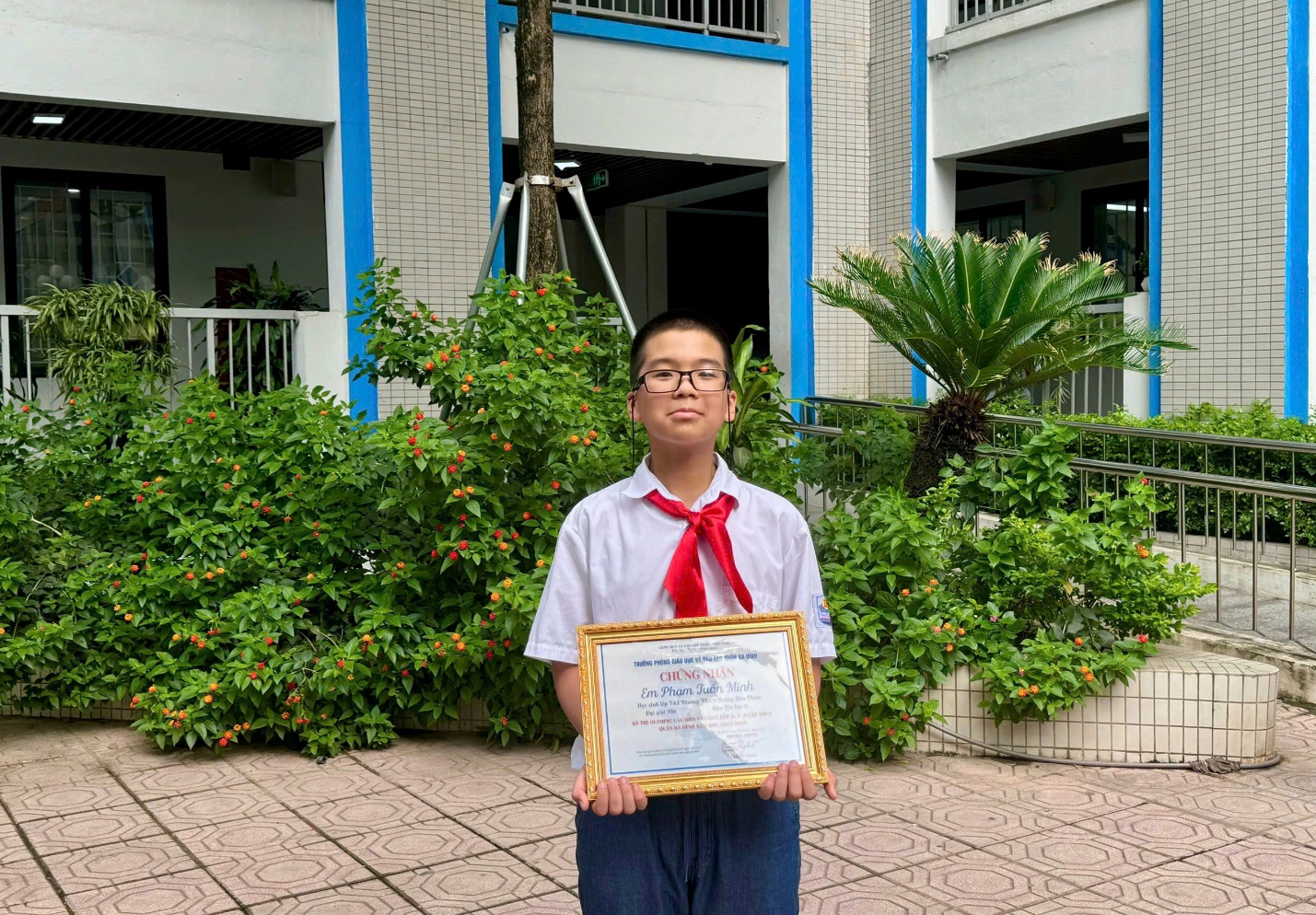 (Học sinh Phạm Tuấn Minh đạt giải Nhất môn Tin học)