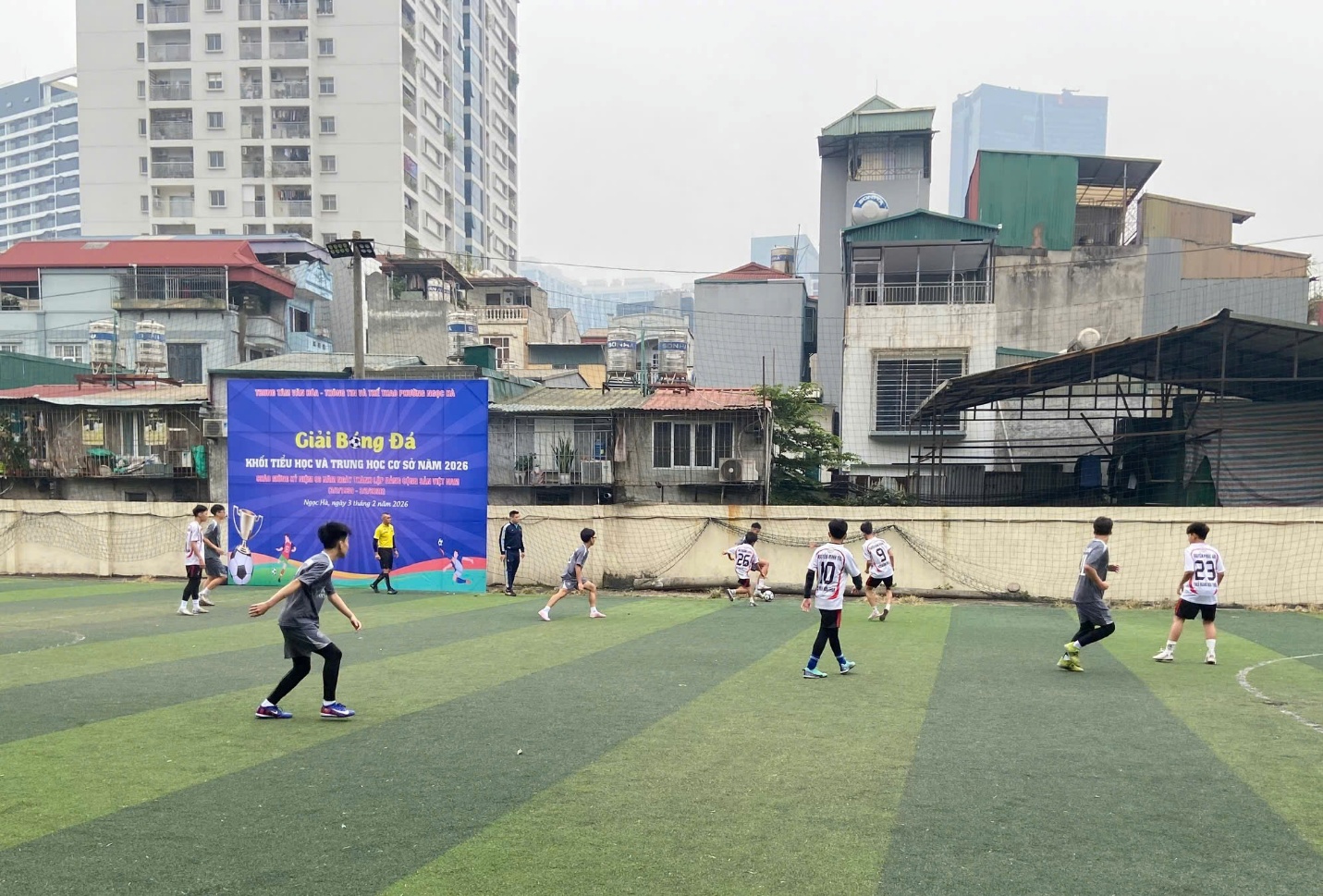 Bước sang trận đấu thứ hai gặp THCS Ba Đình ngày 4/2/2026, dù đã rất nỗ lực và thi đấu kiên cường, đội bóng Hoàng Hoa Thám vẫn chưa thể vượt qua đối thủ mạnh, chấp nhận tỷ số 0-2. Tuy nhiên, thất bại này không làm các cầu thủ nản lòng, mà ngược lại, trở thành động lực để toàn đội siết chặt đội hình, điều chỉnh chiến thuật cho chặng đường tiếp theo.