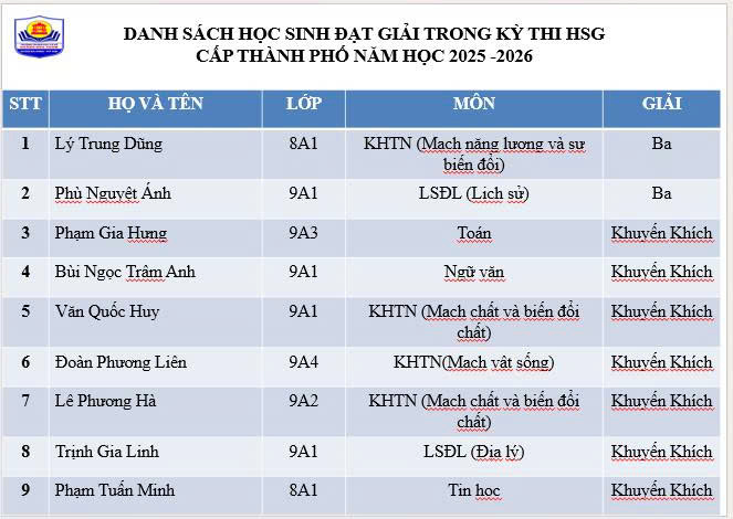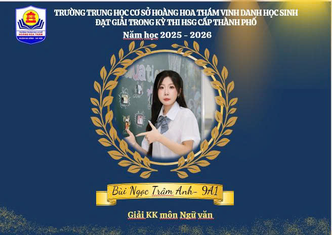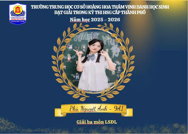 Kỳ thi học sinh giỏi cấp thành phố là sân chơi trí tuệ lớn, nơi quy tụ những học sinh ưu tú đến từ nhiều nhà trường trên địa bàn. Lần đầu tiên học sinh THCS Hoàng Hoa Thám đã tự tin chinh phục thử thách, ghi dấu ấn bằng những kết quả đáng tự hào. Mỗi giải thưởng không chỉ là niềm vui của riêng cá nhân học sinh mà còn là minh chứng rõ nét cho chất lượng giáo dục và định hướng bồi dưỡng mũi nhọn của nhà trường.
