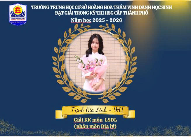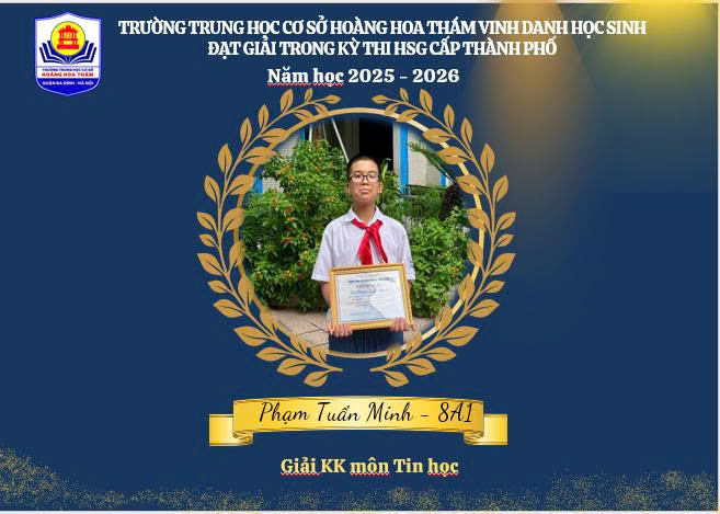 Nhà trường trân trọng vinh danh và nhiệt liệt chúc mừng các em học sinh đạt giải. Tin tưởng rằng, với nền tảng đã có, học sinh THCS Hoàng Hoa Thám sẽ tiếp tục nuôi dưỡng ước mơ, bứt phá giới hạn và gặt hái thêm nhiều thành công rực rỡ trong tương lai, góp phần làm rạng danh truyền thống hiếu học của nhà trường. 🌟