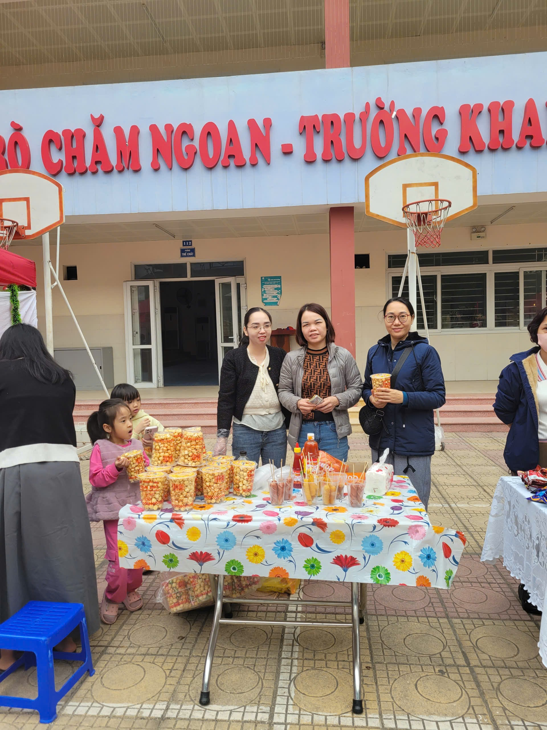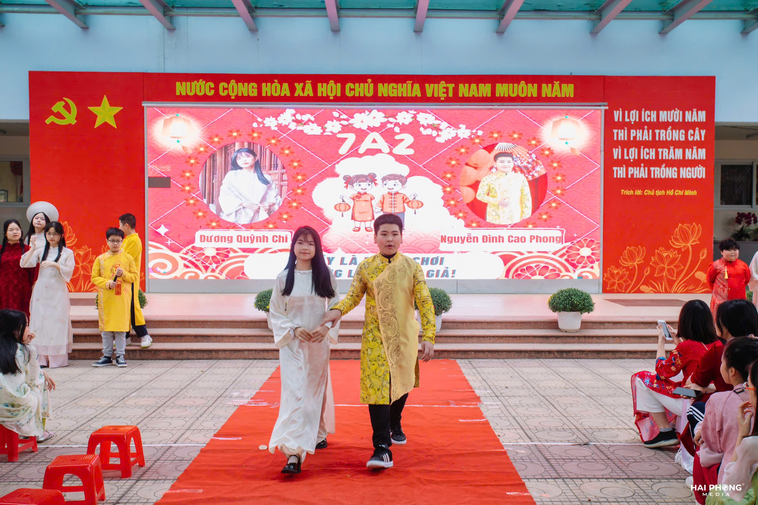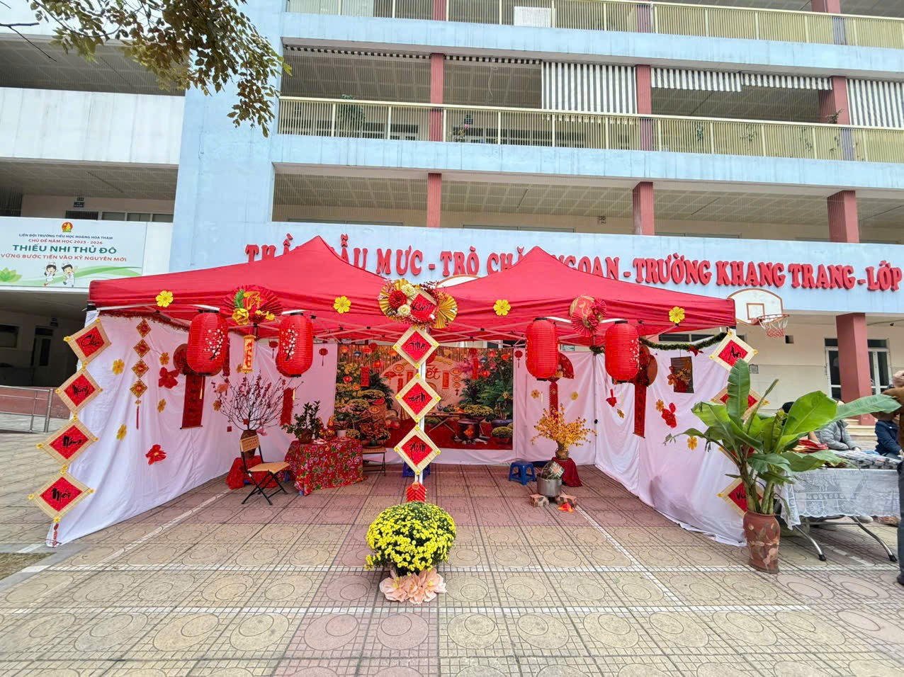 Ngay từ sáng sớm, khu vực hội chợ đã tràn ngập sắc đỏ, sắc vàng cùng tiếng cười nói rộn ràng của thầy cô và các bạn học sinh. Trước khi hội chợ xuân chính thức bắt đầu, học sinh toàn trường đã được tập trung tại sân trường để cùng nhau thưởng thức các tiết mục văn nghệ đến từ các khối lớp. Những màn biểu diễn được chuẩn bị công phu, mang đậm không khí Tết cổ truyền.