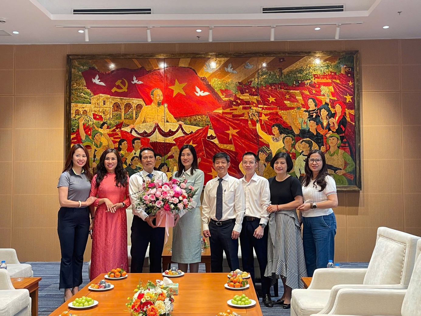 Đại diện nhà trường chụp ảnh lưu niệm cùng đại diện UBND phường Ngọc Hà