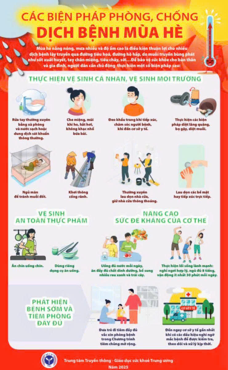 Có thể thấy rằng, mùa hè tiềm ẩn nhiều nguy cơ về dịch bệnh, nhưng hoàn toàn có thể phòng tránh nếu mỗi người nâng cao ý thức và thực hiện đúng các khuyến cáo của ngành y tế. Việc chủ động bảo vệ sức khỏe không chỉ giúp mỗi cá nhân có một mùa hè an toàn, vui khỏe mà còn góp phần bảo vệ sức khỏe chung của cộng đồng.