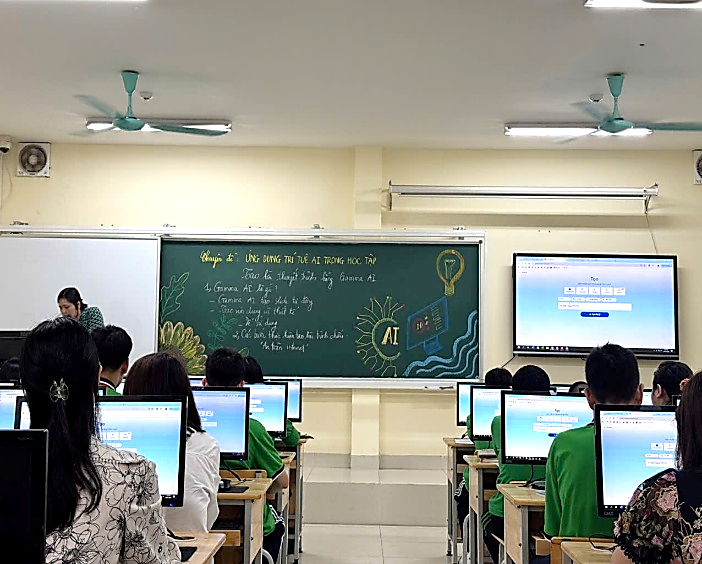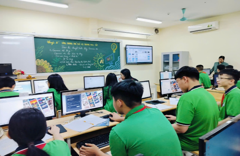 Trong các tiết học thực tế, học sinh THCS tại Hà Nội có thể sử dụng AI thông qua các hoạt động như: tra cứu kiến thức bằng chatbot, luyện tiếng Anh với ứng dụng nhận diện giọng nói, hoặc tạo sơ đồ tư duy tự động. Ở các môn như Ngữ văn, Lịch sử, học sinh có thể dùng AI để tóm tắt bài học, xây dựng sơ đồ tư duy hoặc tìm kiếm thông tin mở rộng. Một số trường còn tổ chức các buổi trải nghiệm, nơi học sinh tự tạo chatbot hoặc mô hình nhận diện hình ảnh đơn giản. Các hoạt động này mang tính tương tác cao, giúp học sinh “học qua trải nghiệm” và phát triển tư duy logic, sáng tạo. AI mang lại nhiều lợi ích rõ rệt. Trước hết, AI giúp cá nhân hóa việc học, mỗi học sinh có thể học theo tốc độ và năng lực riêng của mỗi cá nhân. Ngoài ra, AI còn hỗ trợ giáo viên trong việc chấm bài, phân tích kết quả học tập và thiết kế bài giảng hiệu quả hơn. Đặc biệt, trong môi trường đô thị như Hà Nội, nơi học sinh tiếp cận công nghệ sớm, AI giúp tăng hứng thú học tập và phát triển kỹ năng tự học. Tuy nhiên, việc sử dụng AI cũng cần đi kèm với giáo dục về “đạo đức số” để tránh lạm dụng và việc sử dụng AI cũng cần được định hướng đúng cách. Nếu lạm dụng quá, học sinh có thể trở nên phụ thuộc và giảm khả năng tư duy độc lập. Vì vậy, giáo viên và nhà trường cần hướng dẫn học sinh sử dụng AI một cách có trách nhiệm, biết chọn lọc thông tin và coi AI là công cụ hỗ trợ chứ không phải thay thế hoàn toàn cho việc học.