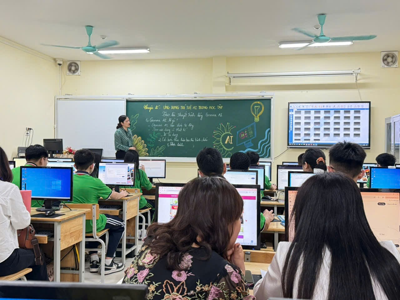 Điểm nổi bật của tiết dạy là việc giáo viên đã tích hợp AI vào nhiều hoạt động học tập một cách tự nhiên và hiệu quả. Học sinh được hướng dẫn sử dụng các công cụ AI để tìm kiếm thông tin, gợi ý ý tưởng, kiểm tra lỗi chính tả, cũng như hỗ trợ viết đoạn văn, thuyết trình. Không khí lớp học trở nên sôi nổi khi các em chủ động khám phá, trao đổi và sáng tạo sản phẩm học tập với sự hỗ trợ của công nghệ. Giáo viên đóng vai trò định hướng, giúp học sinh sử dụng AI đúng cách, tránh phụ thuộc hoàn toàn vào công cụ.