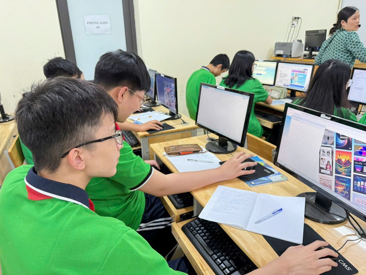 Học sinh thích thú ứng dụng công nghệ AI trong học tập