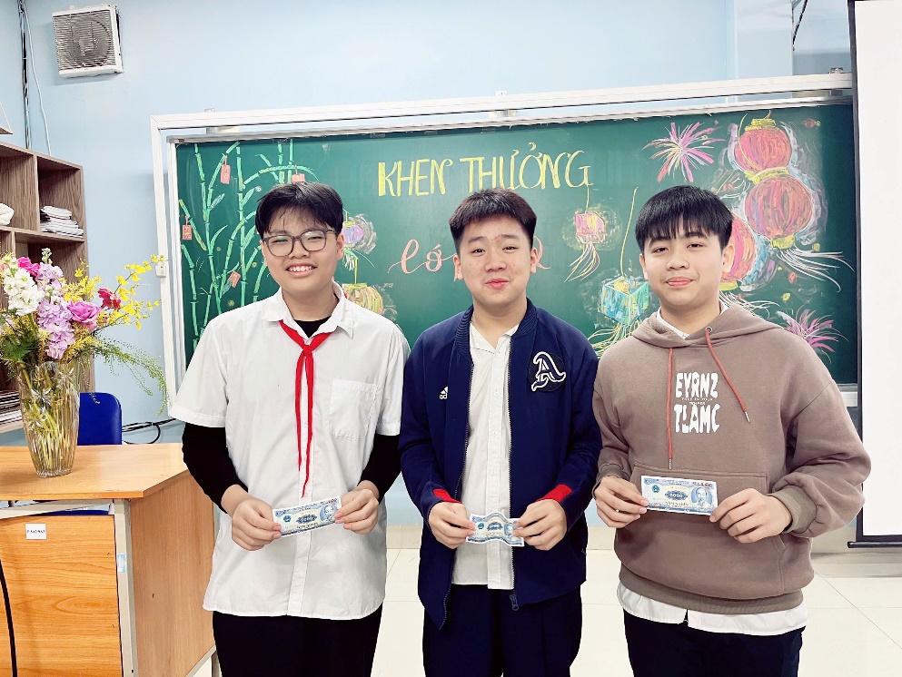 Chúng em xin được chúc mừng các bạn học sinh đạt tổng điểm 3 môn Toán, Ngữ văn và Tiếng Anh từ 24 điểm trở lên, các bạn có sự tiến bộ rõ rệt so với bài kiểm tra giữa kỳ, cũng như những bạn đạt điểm từ 9,0 trở lên với bộ môn Toán. Mỗi kết quả đều mang một ý nghĩa riêng, thể hiện tinh thần chăm chỉ, ý thức tự giác và quyết tâm vươn lên trong học tập của các bạn.