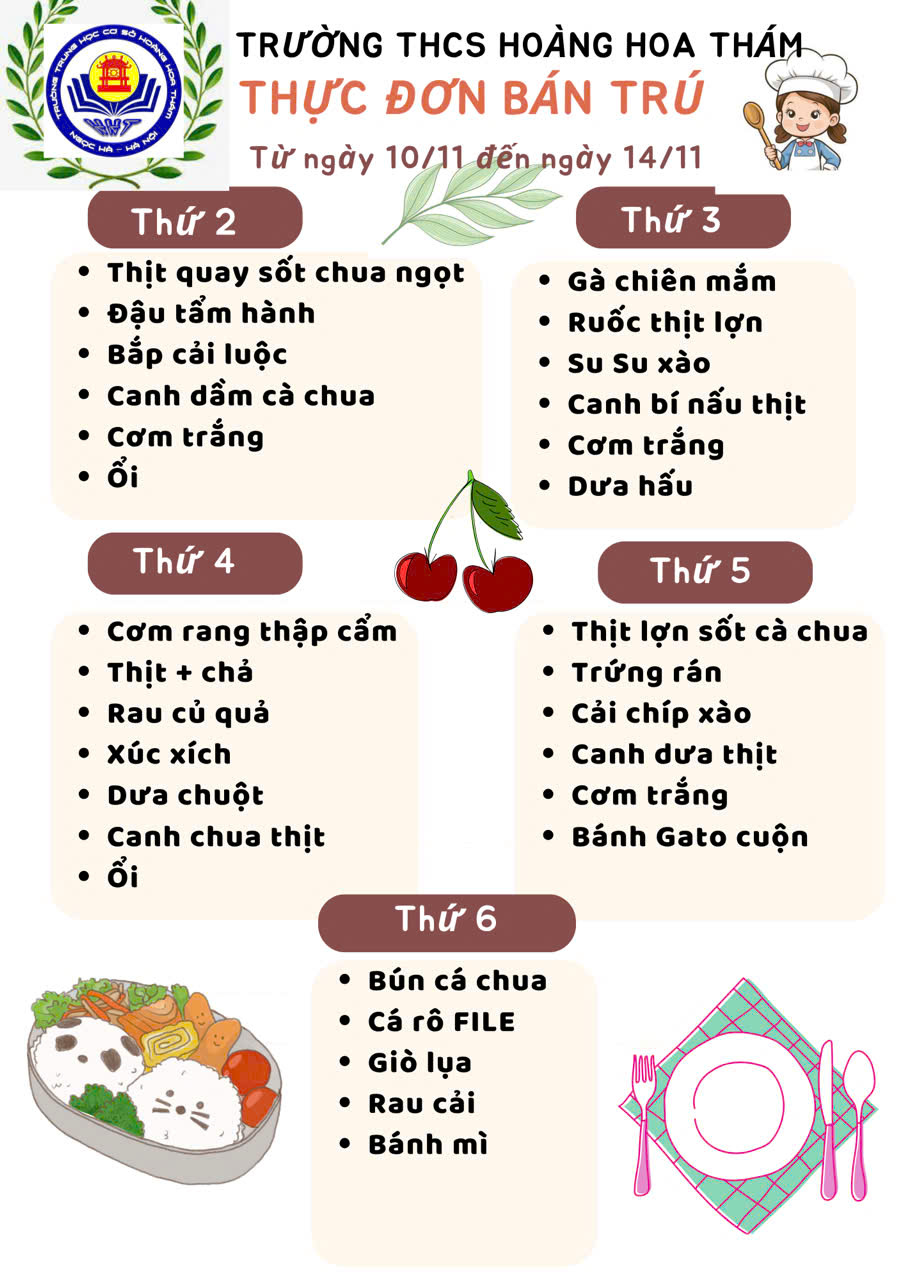 Thực đơn bán trú tuần từ 10/11-14/11/2025