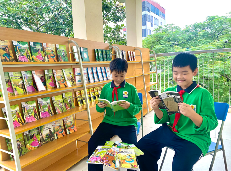 Một hành lang với không khí xanh mát là nơi lí tưởng để các bạn học sinh tìm đọc sách