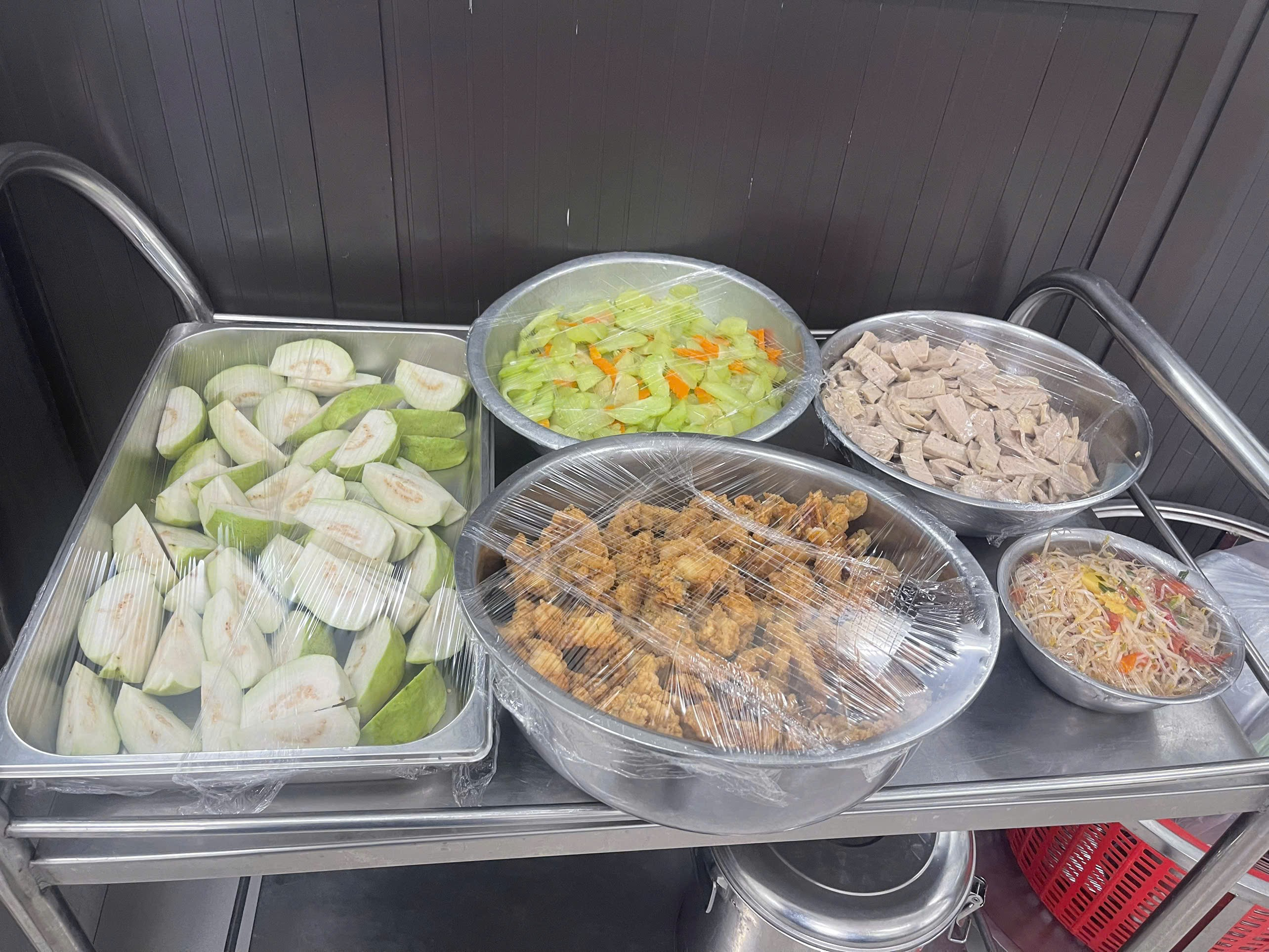 Bảo quản thức ăn trước khi chia vào các xuất ăn