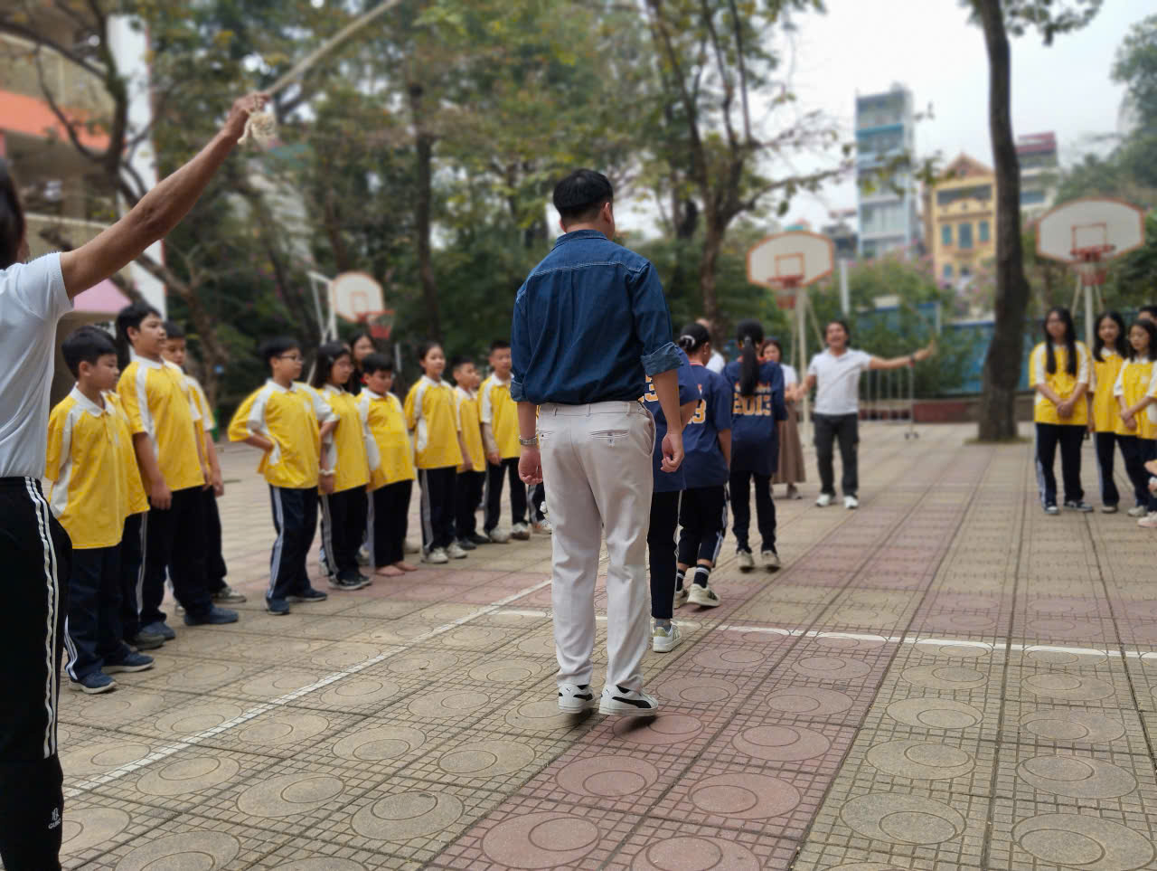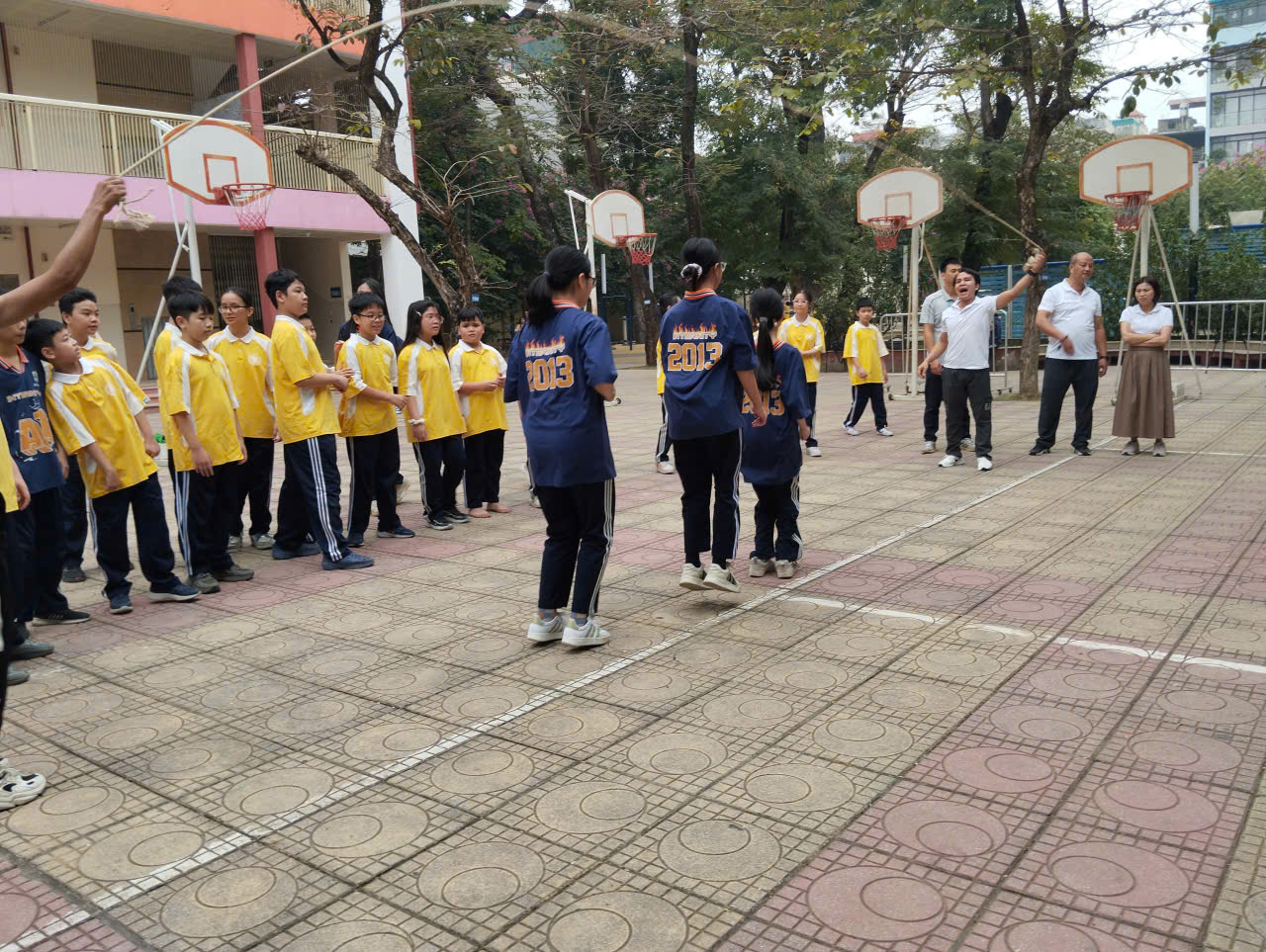 Học sinh thích thứ với trò chơi nhảy day tập thể