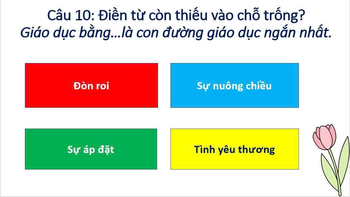 Đặc biệt, hội nghị còn mang đến một hoạt động tương tác đầy thú vị mang tên “Đấu trường thấu hiểu”. Qua 10 câu hỏi trắc nghiệm xoay quanh việc học tập và sinh hoạt ở trường của con, phụ huynh được thử thách chính sự quan tâm của mình đối với con cái. Có những câu trả lời khiến bố mẹ bật cười vì sự bất ngờ, cũng có những câu hỏi khiến không ít phụ huynh chợt nhận ra rằng đôi khi mình vẫn chưa thực sự để tâm đến từng chi tiết nhỏ trong đời sống học tập của con. Chính sự chân thật và hồn nhiên ấy đã tạo nên một không khí vừa vui tươi, vừa sâu lắng, để sau cùng mỗi bậc cha mẹ đều thấy được trách nhiệm đồng hành cùng cô giáo chủ nhiệm trong việc giúp con nâng cao ý thức học tập, rèn luyện tốt hơn mỗi ngày.