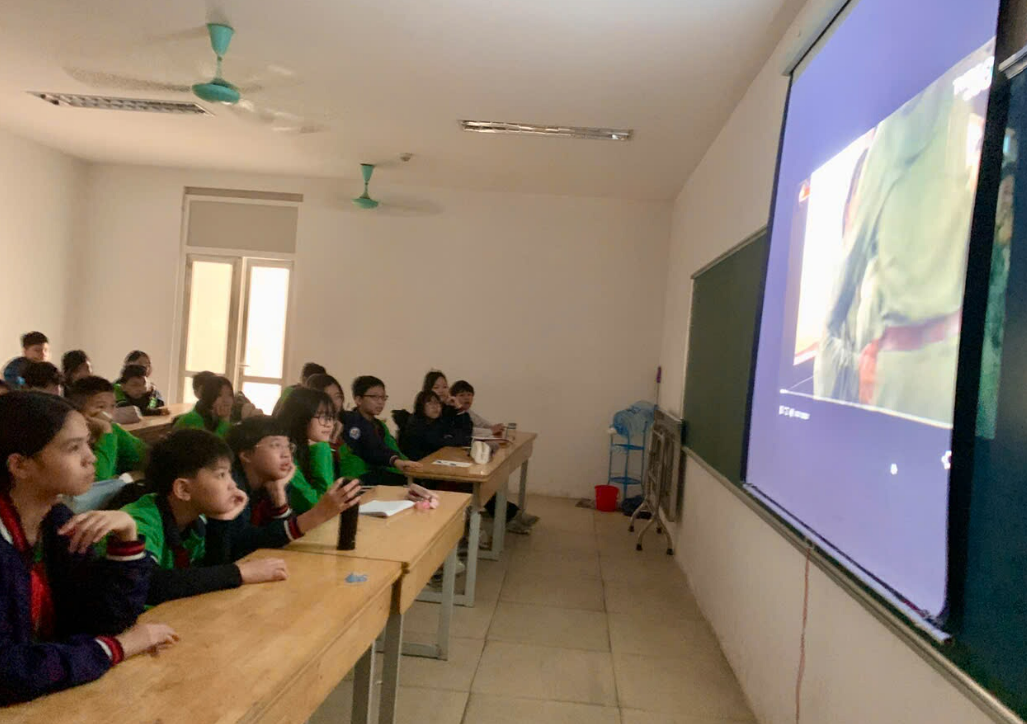 Cả lớp hào hứng khi được xem phim “Mưa đỏ”