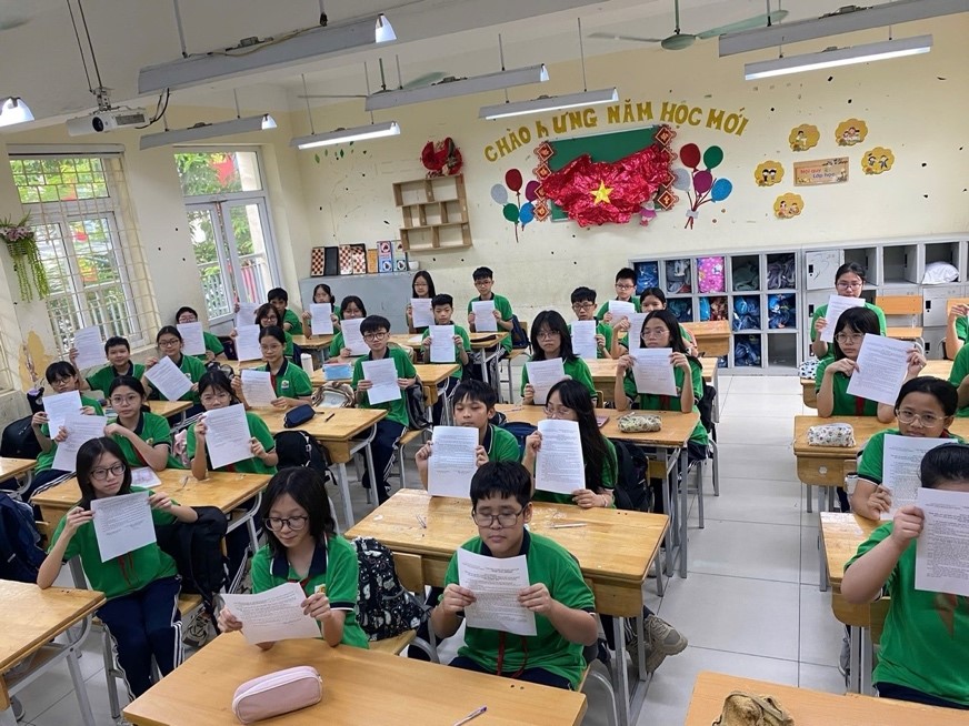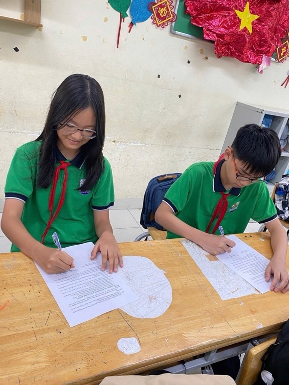 Tập thể lớp 7A3 ký cam kết phòng chống bạo lực học đường, đảm bảo trật tự an toàn giao thông.