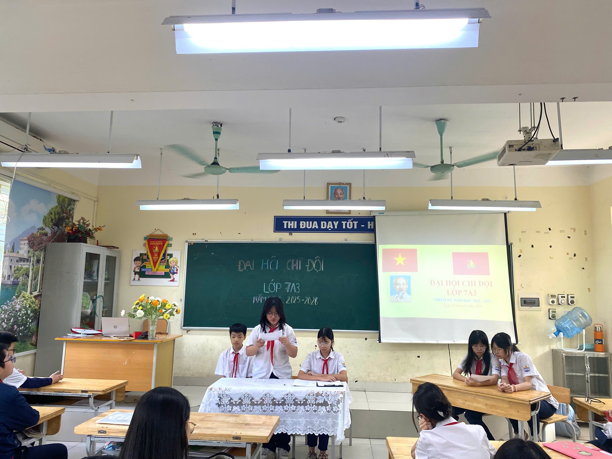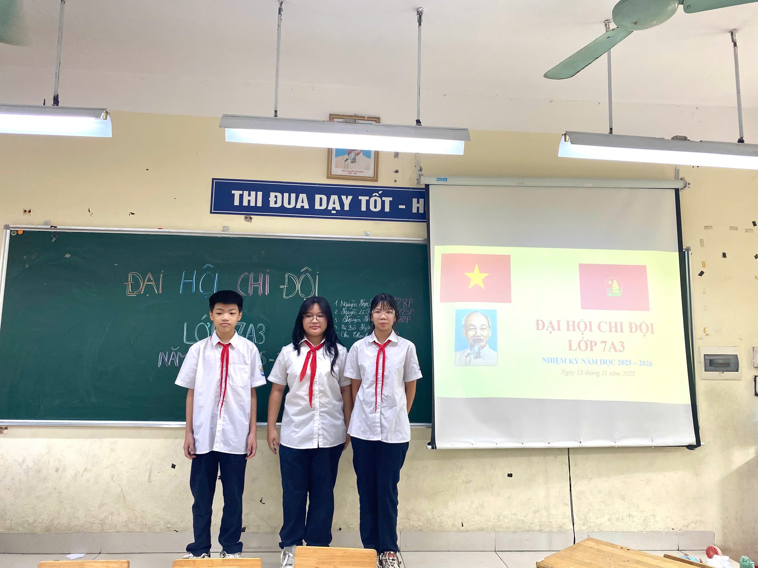 Ba gương mặt tiêu biểu ấy đại diện cho ý chí, tinh thần và sự đoàn kết của tập thể 7A3, cùng nhau phát biểu nhận nhiệm vụ trước tập thể trong niềm tin yêu và kỳ vọng của cô Hoa cùng các bạn đội viên. Đại hội khép lại bằng phần trình bày dự thảo nghị quyết và bế mạc, khẳng định niềm tin vững chắc: Chi đội lớp 7A3 – Tập thể đoàn kết, vững mạnh – luôn tiên phong trong học tập, gương mẫu trong rèn luyện và tỏa sáng trong mọi phong trào của Liên đội!