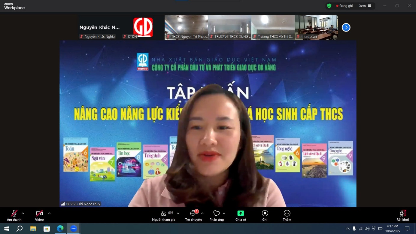 Trong buổi tập huấn, TS. Vũ Thị Ngọc Thúy đã tập trung làm rõ những nội dung cốt lõi trong việc đổi mới kiểm tra, đánh giá theo hướng phát triển phẩm chất và năng lực học sinh, đặc biệt nhấn mạnh vai trò của giáo viên trong việc thiết kế hoạt động học tập, quan sát, và phản hồi nhằm thúc đẩy sự tiến bộ của người học.