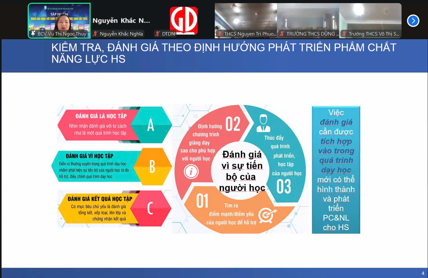 Qua buổi học, giáo viên đã hiểu sâu hơn về bản chất của đánh giá theo định hướng phát triển năng lực, đồng thời rút ra được nhiều kinh nghiệm thực tế trong việc thiết kế bài dạy, xây dựng ma trận đề, bảng đặc tả đề kiểm tra phù hợp với từng đối tượng học sinh.