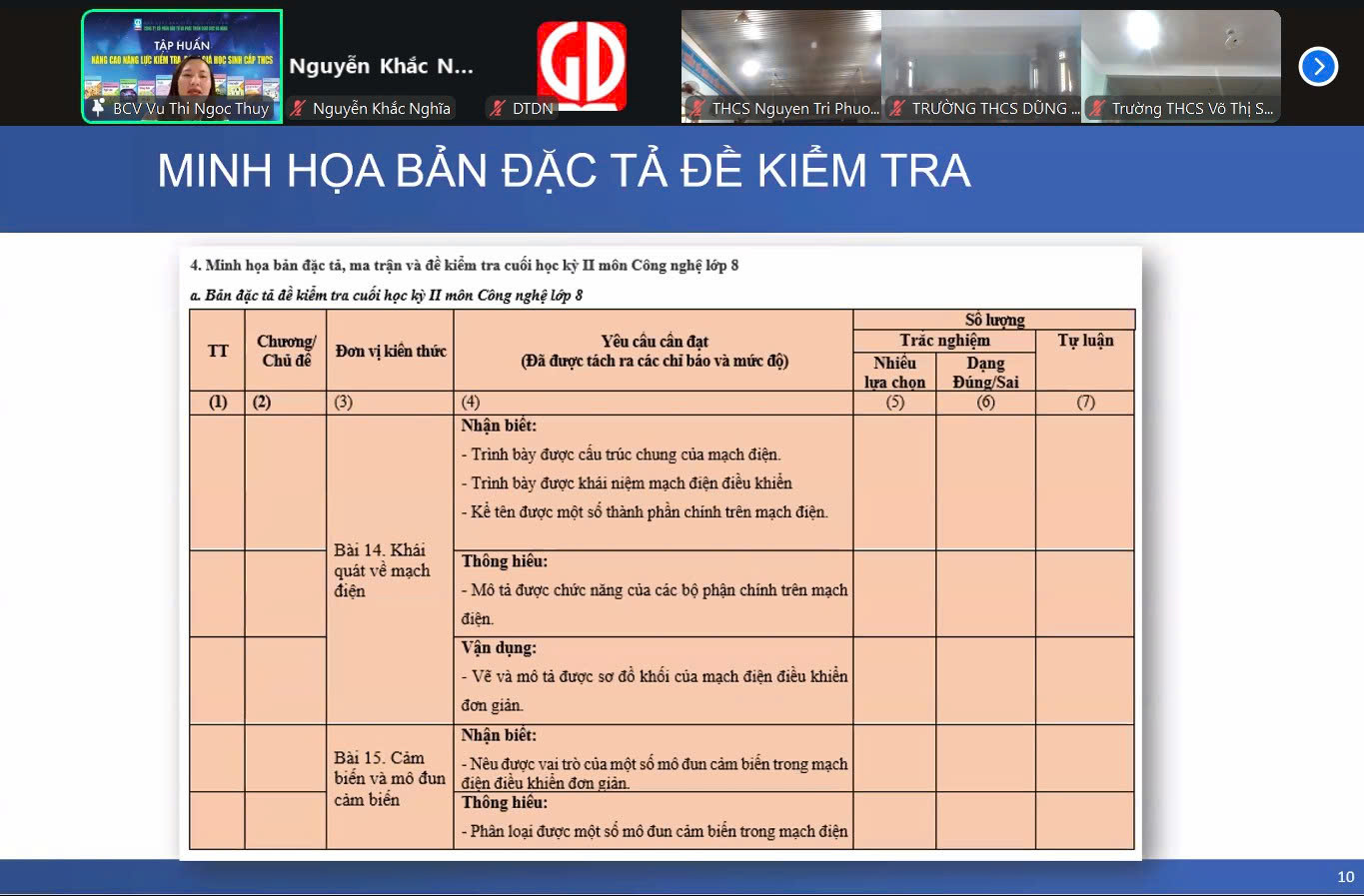 Bên cạnh đó, các thầy cô cũng được hướng dẫn xây dựng bảng đặc tả đề kiểm tra – công cụ quan trọng giúp đảm bảo sự thống nhất giữa nội dung dạy học và yêu cầu cần đạt, qua ba cấp độ tư duy: nhận biết – thông hiểu – vận dụng.