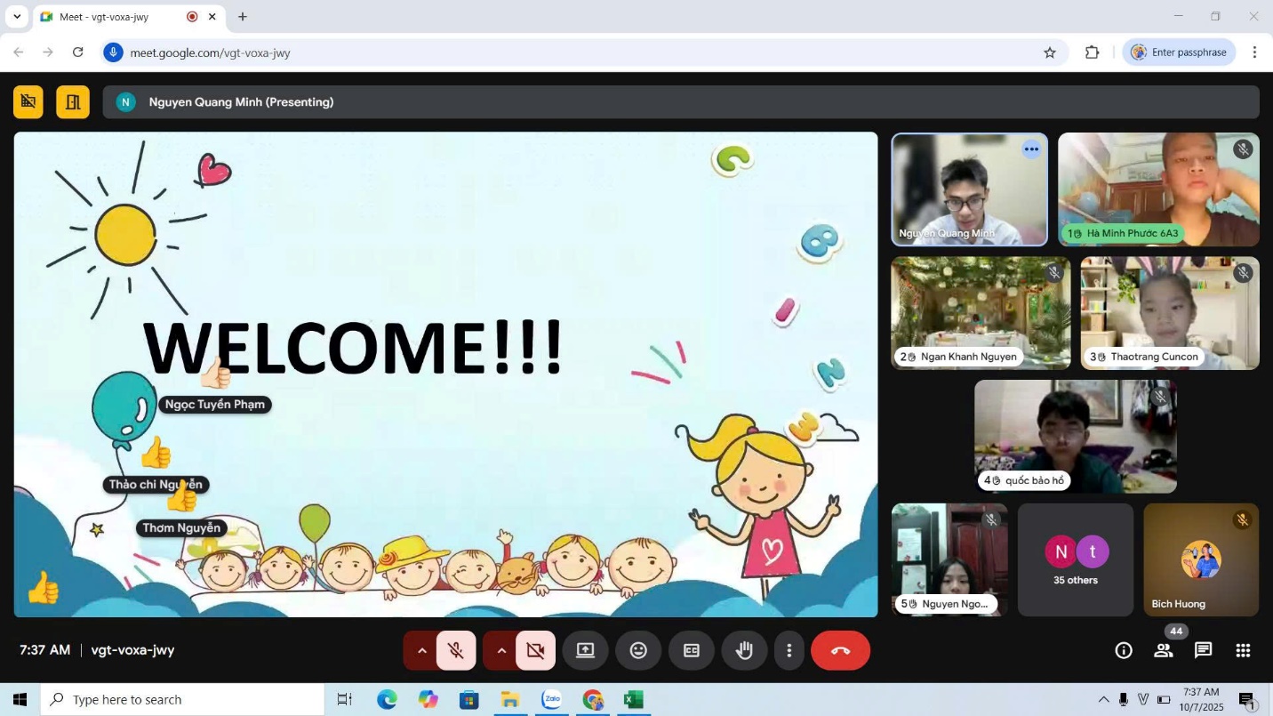 Buổi học đầu tiên online, màn hình Google Meet sáng rực những khuôn mặt quen thuộc. Dù ngoài trời mưa gió, trong lớp học ảo vẫn tràn ngập tiếng cười và sự hứng khởi. Có bạn còn khoe “bạn đồng hành” là chú mèo nằm kế bên bàn học, hay chiếc cốc cacao nóng tỏa khói nghi ngút – trông vừa dễ thương vừa ấm lòng.