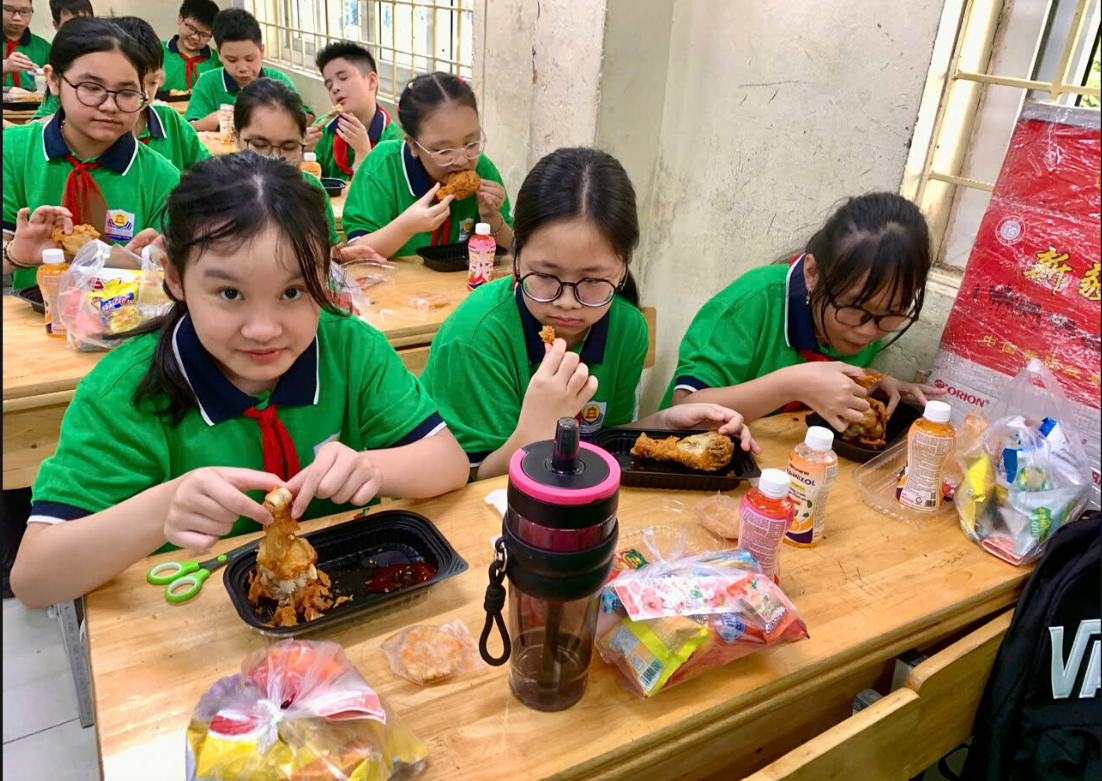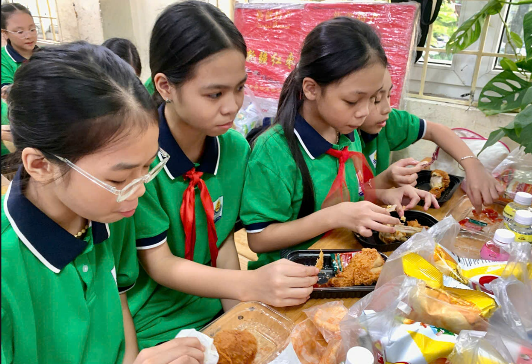 Các bạn học sinh lớp 6A2 cũng tự tay trang trí mâm cỗ cho riêng mình