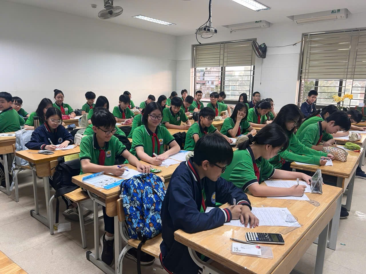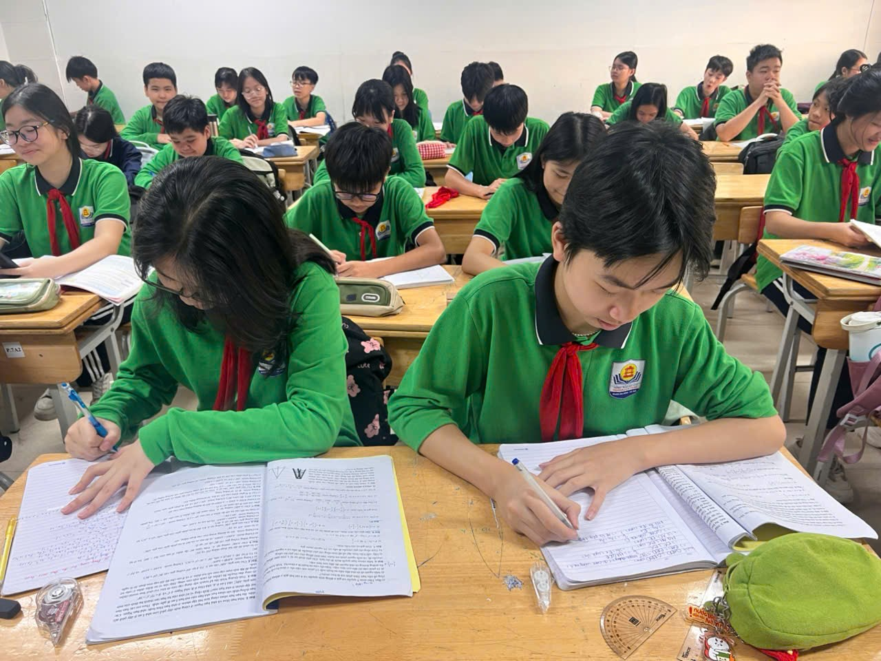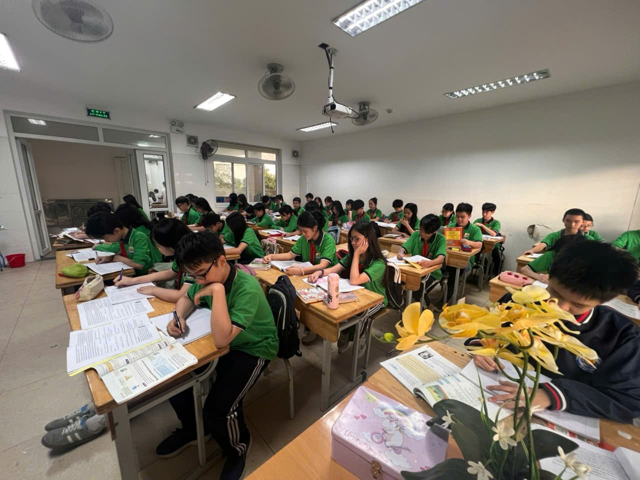 Khi thầy cô phát đề, cả lớp nhanh chóng tập trung làm. Mỗi bạn đều cố gắng suy nghĩ cẩn thận, vận dụng những kiến thức đã ôn tập để giải quyết từng câu hỏi. Ai cũng nỗ lực hết mình để hoàn thành bài thi trong thời gian quy định.