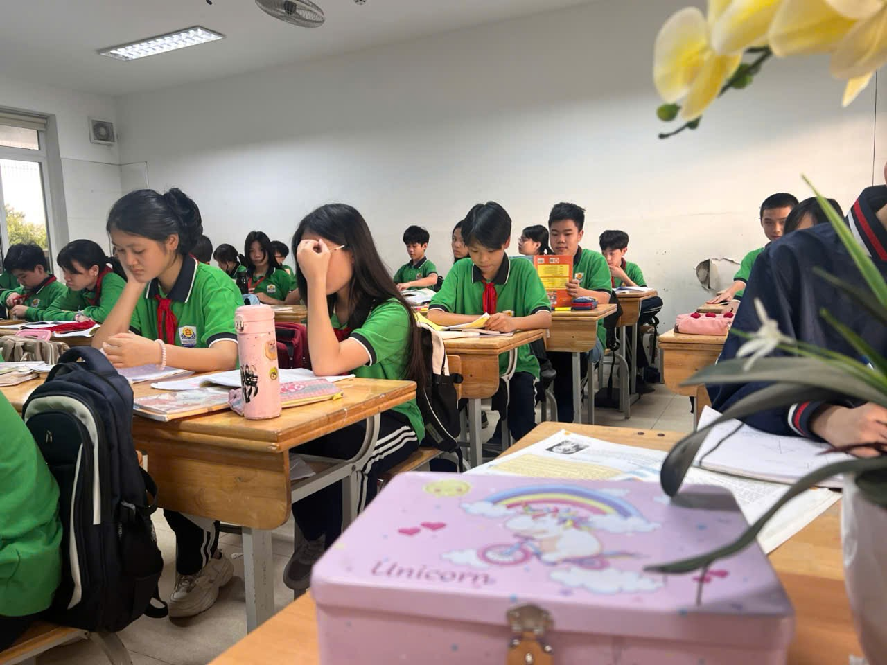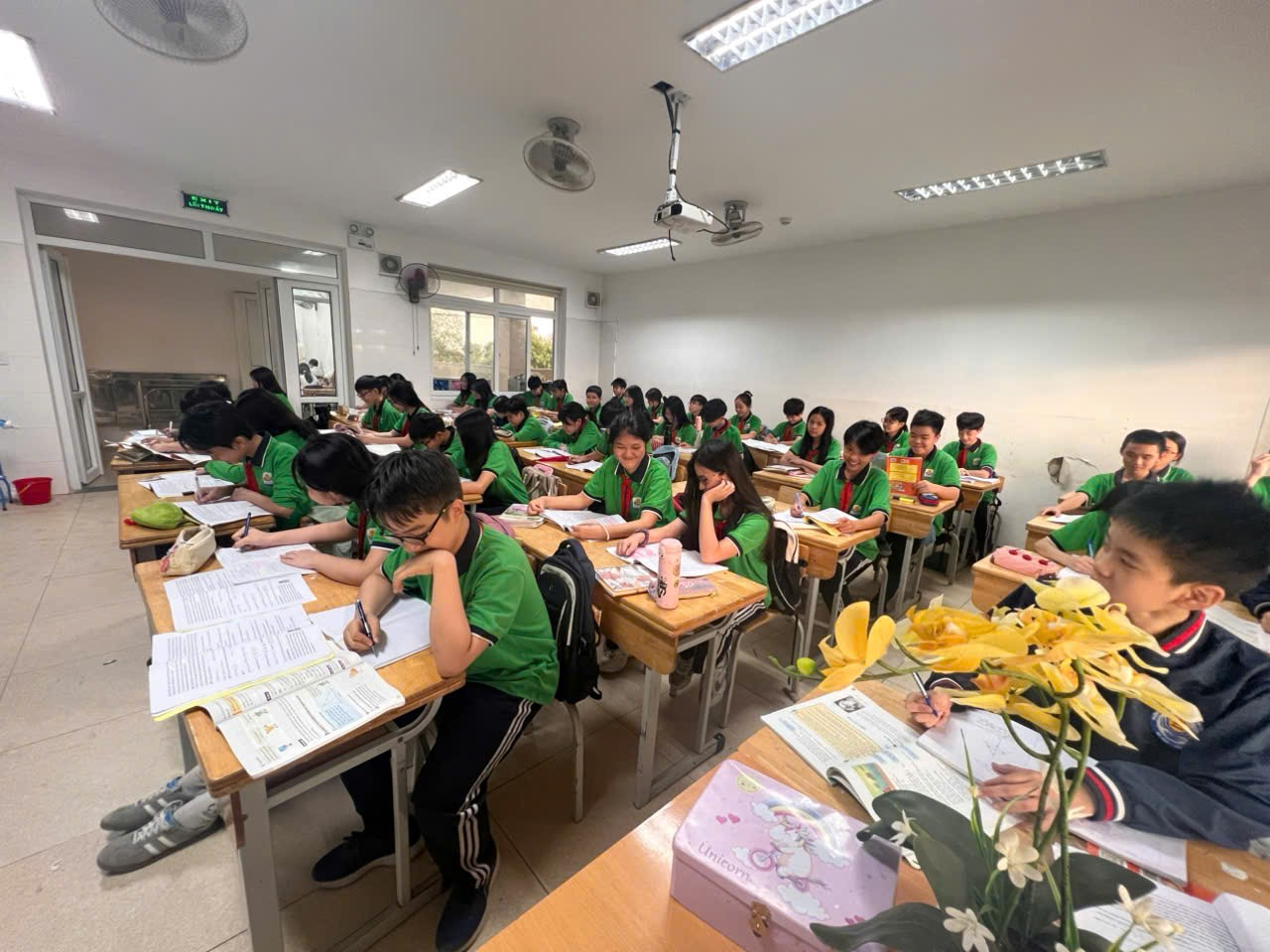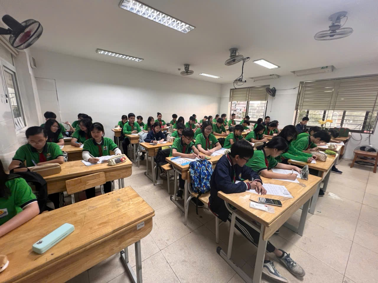 Khi thầy cô phát đề, cả lớp nhanh chóng tập trung làm. Mỗi bạn đều cố gắng suy nghĩ cẩn thận, vận dụng những kiến thức đã ôn tập để giải quyết từng câu hỏi. Ai cũng nỗ lực hết mình để hoàn thành bài thi trong thời gian quy định.