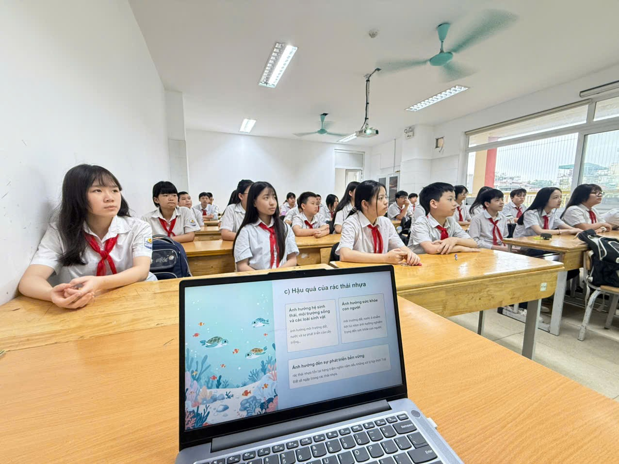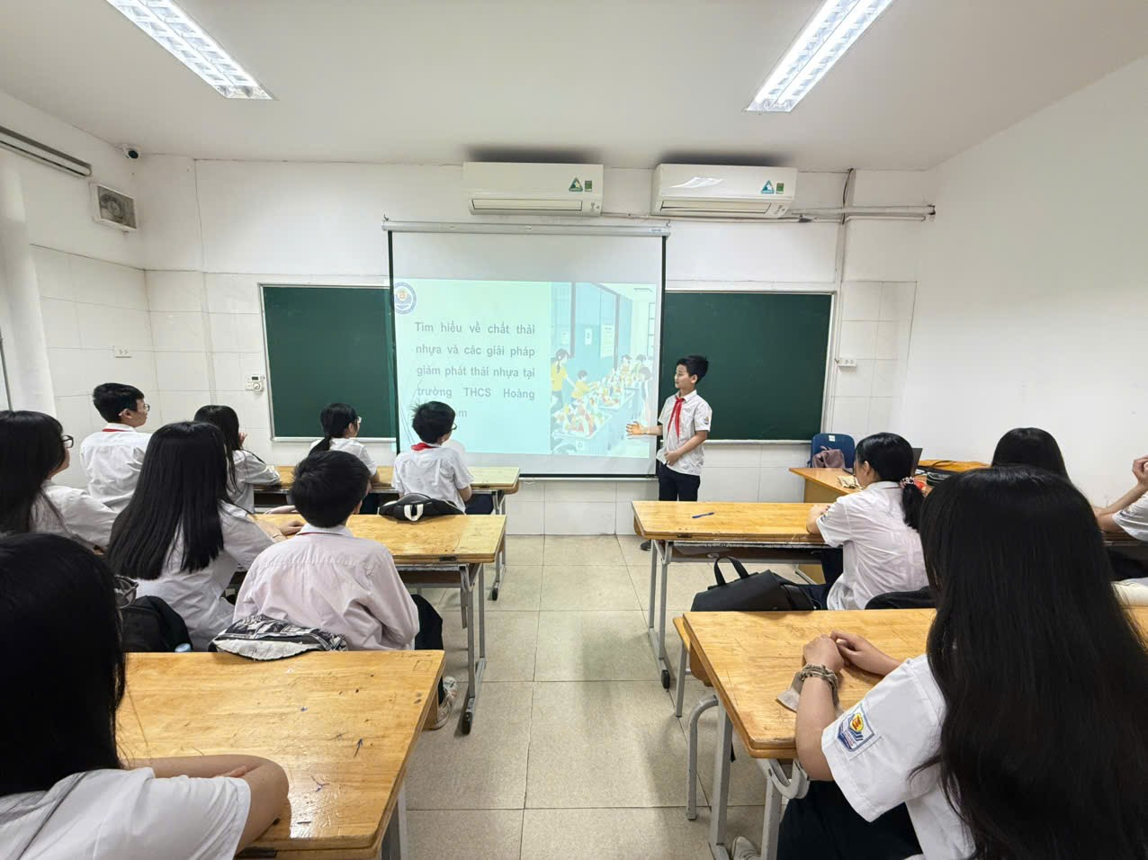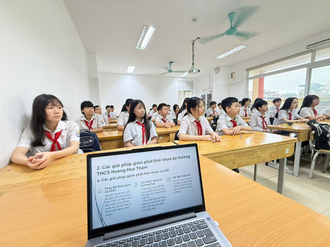 Tại trường THCS Hoàng Hoa Thám, tình trạng rác thải nhựa cũng không phải là ngoại lệ. Sau mỗi giờ ra chơi hay giờ ăn, sân trường vẫn còn xuất hiện vỏ bánh kẹo, chai nhựa, túi nilon… Điều đó đặt ra yêu cầu cấp thiết: mỗi học sinh cần nâng cao ý thức và hành động thiết thực để giảm thiểu rác thải nhựa.