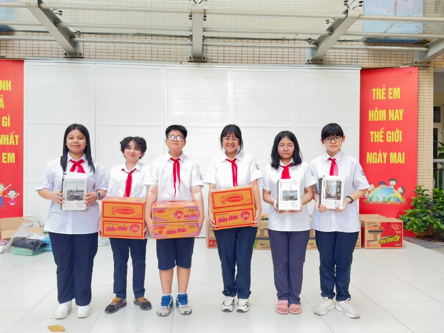 Các bạn học sinh đại diện lớp tham gia ủng hộ nhân dân vùng lũ