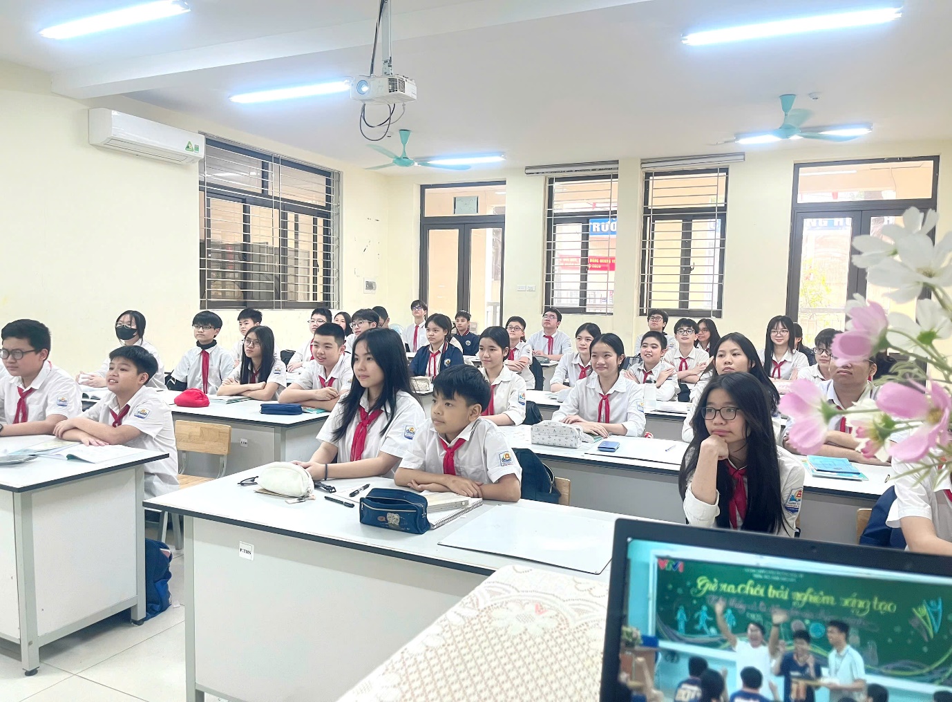 Cả lớp chăm chú theo dõi đoạn video