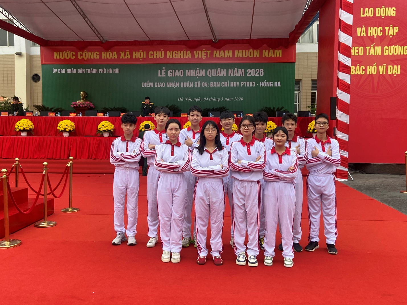 Trong không khí trang nghiêm và xúc động của Lễ giao nhận quân tiễn các chiến sĩ tân binh lên đường nhập ngũ tại “Điểm giao nhận quân số 4” do Trung tâm Văn hóa - Thông tin phường Ngọc Hà tổ chức sáng ngày 4/3/2026, học sinh Trường THCS Hoàng Hoa Thám vinh dự được tham gia thực hiện nghi thức rước đuốc – một hoạt động mang ý nghĩa biểu tượng sâu sắc, thể hiện tinh thần tiếp nối truyền thống yêu nước của thế hệ trẻ.