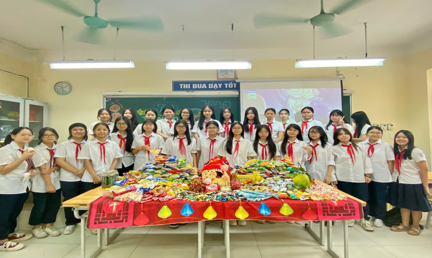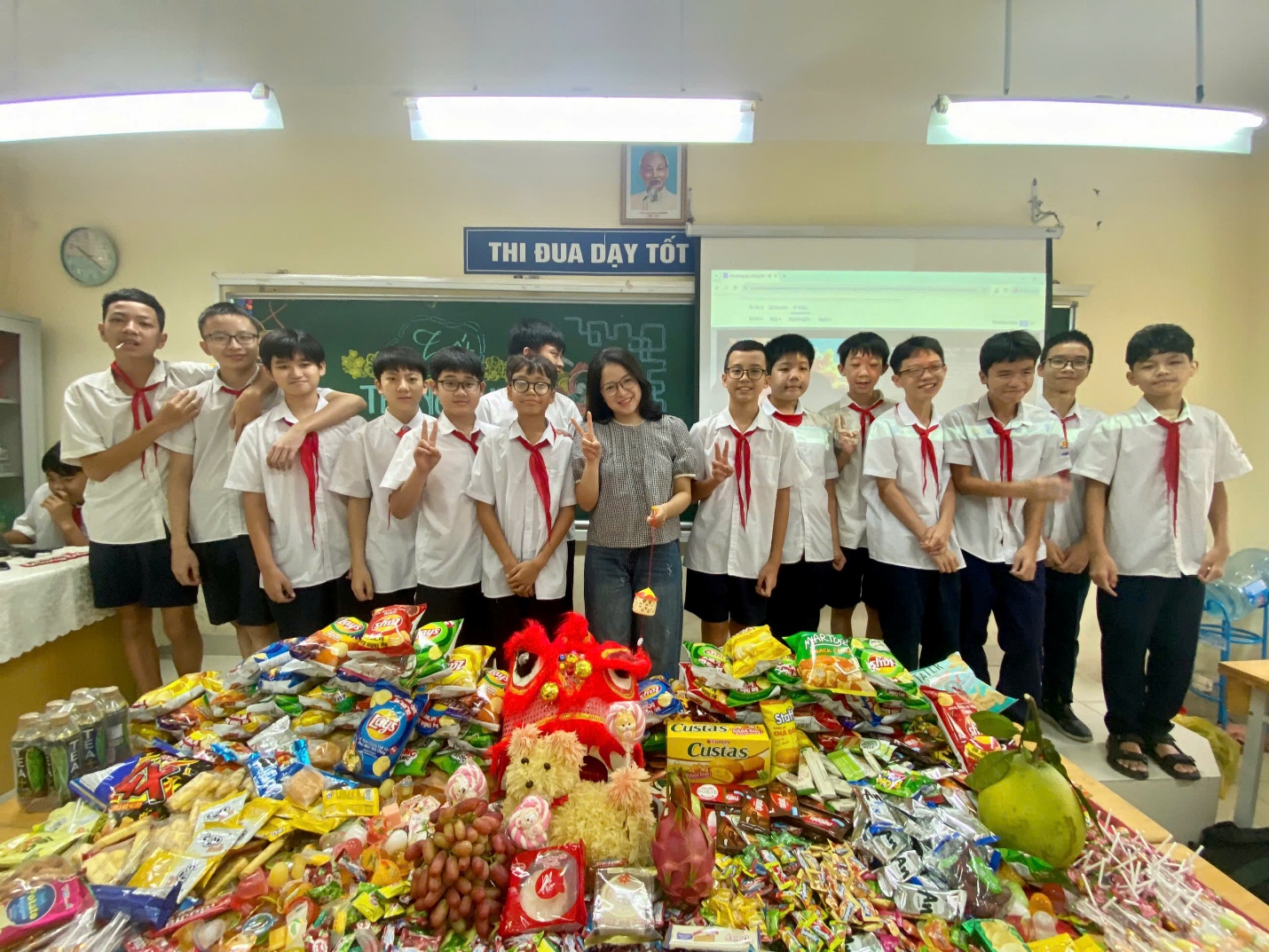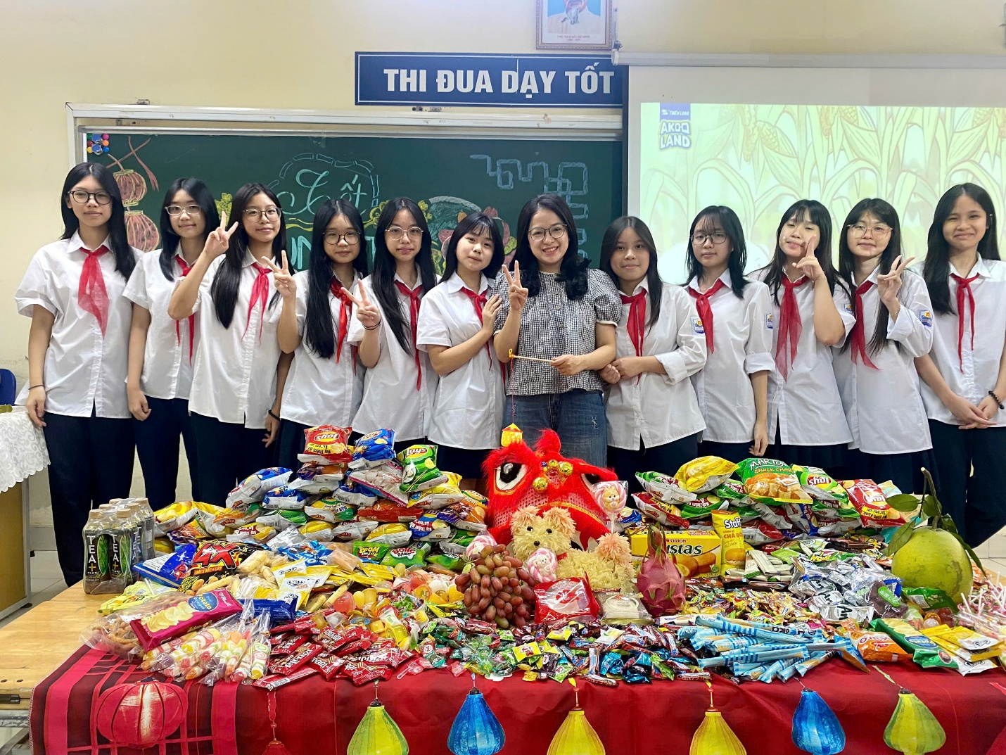 Và rồi cũng đến phần mà ai ai trong lớp cũng mong chờ đó là phá cỗ Trung Thu. Từng cái bánh, cái kẹo hay trái cây không chỉ là một món ăn mà còn là sự sẻ chia, quan tâm nhau giữa các bạn cùng lớp. Đó là một tình cảm đáng để trân quý và lan tỏa. Vừa cùng nhau phá cỗ, vừa kể chuyện rôm rả khiến khung cảnh lớp học càng thêm náo nhiệt, đẹp đẽ và mang đậm không khí của dịp lễ Trung Thu.