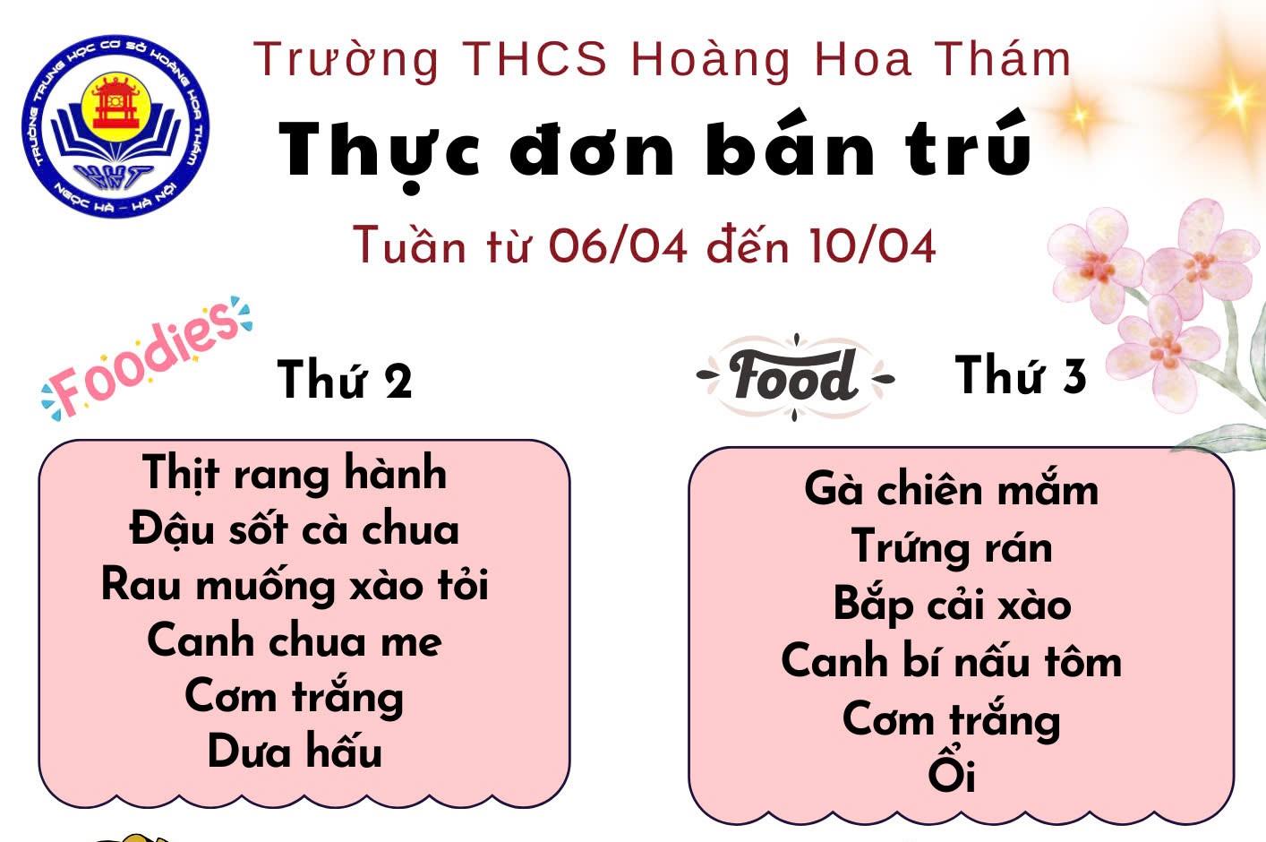 Thực đơn bán trú tuần từ 06/04-10/04/2026