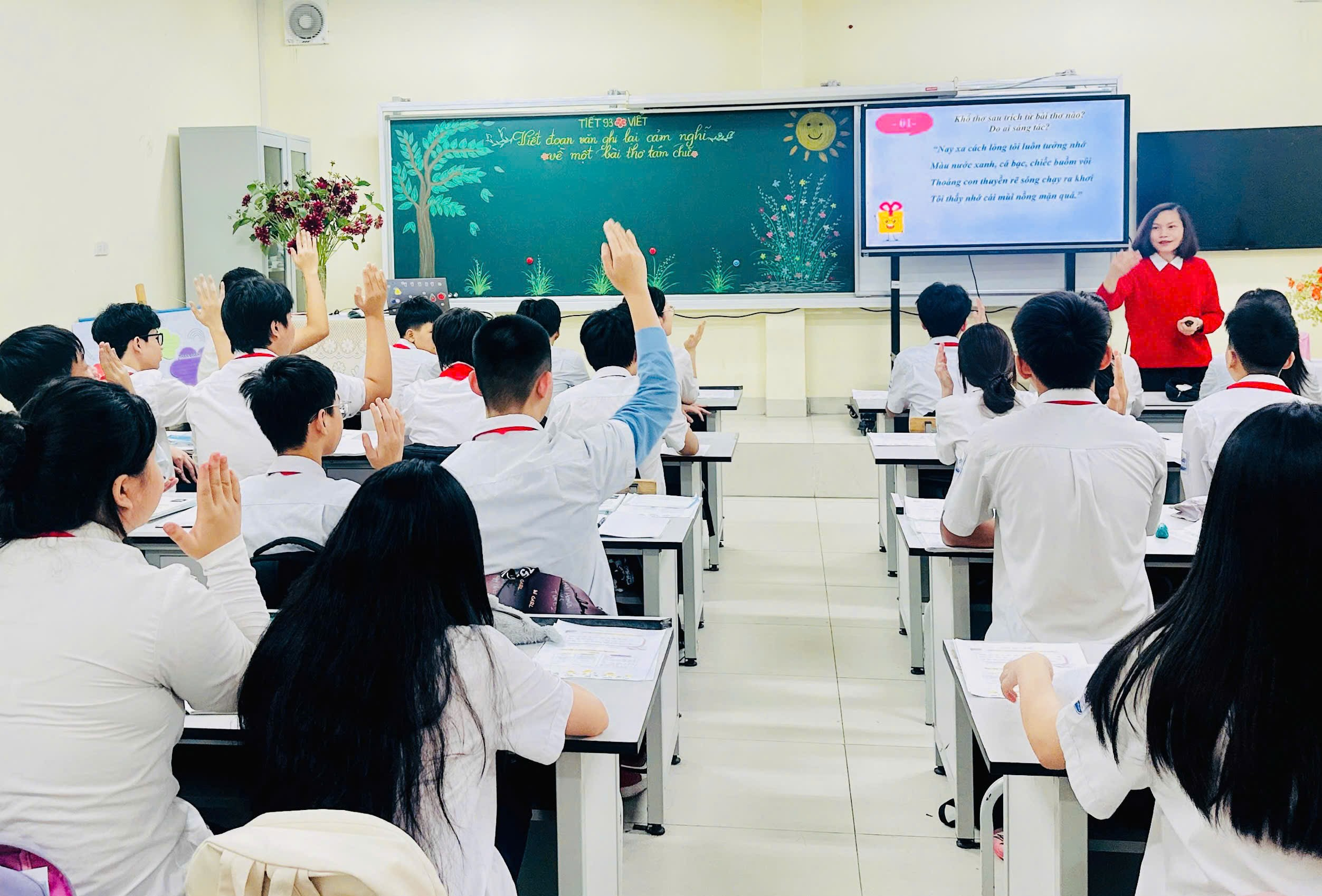 Thế nhưng, suy nghĩ ấy đã hoàn toàn thay đổi sau tiết học "Viết đoạn văn ghi lại cảm nghĩ về một bài thơ tám chữ" của cô Nguyễn Thị Thanh Mai, diễn ra tại lớp 9A5 trường THCS Hoàng Hoa Thám của chúng mình.