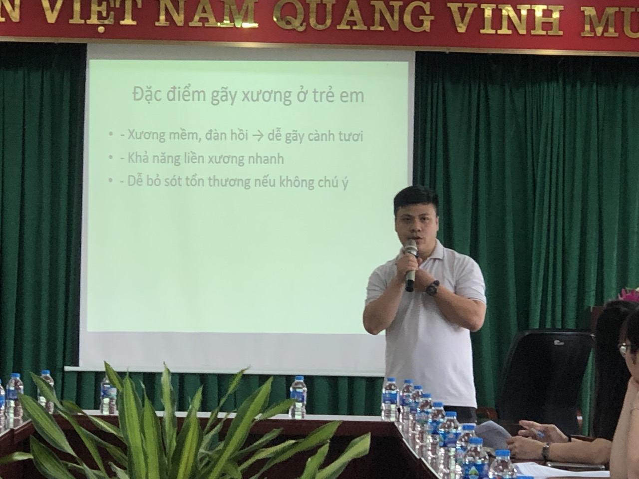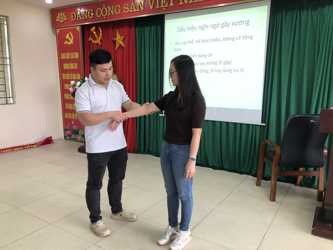 Trong chương trình, giảng viên đã truyền đạt những kiến thức quan trọng về nhận biết, xử trí ban đầu và phòng tránh sai lầm trong sơ cứu gãy xương. Cụ thể: