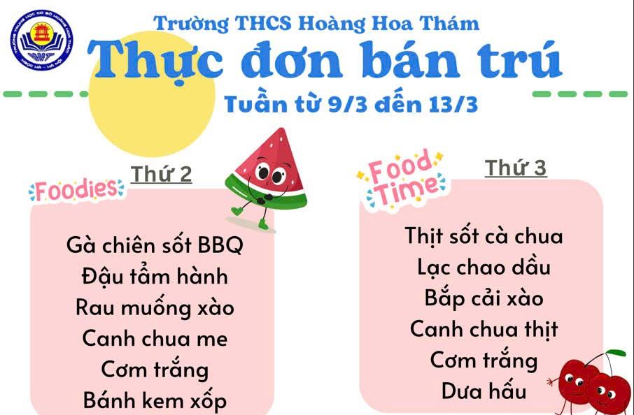 Thực đơn bán trú tuần từ 13/04-17/04/2026