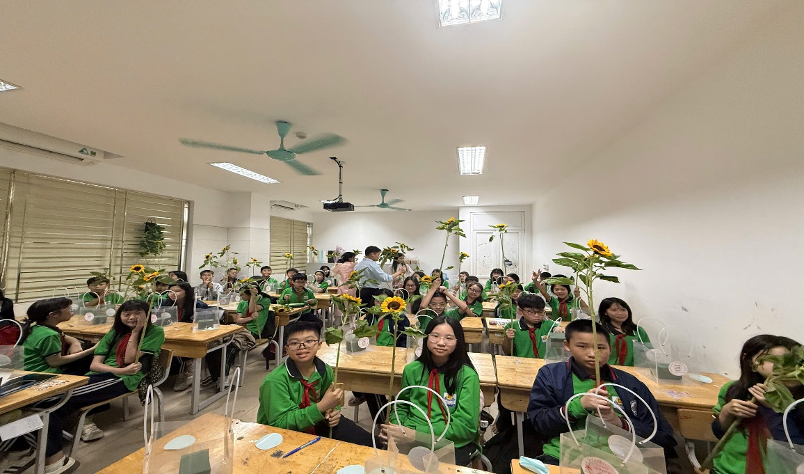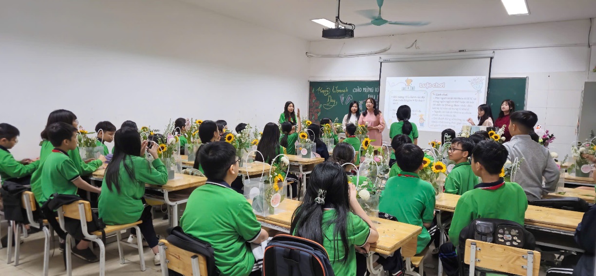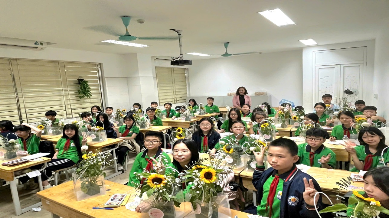 Phần lắng đọng nhất chính là lúc các "nghệ nhân nhí" 6A4 tự tay trổ tài cắm hoa. Lần đầu tiên cầm kéo, tỉa lá, chọn hoa, bạn nào cũng vô cùng chăm chút. Mỗi lẵng hoa không chỉ có màu sắc rực rỡ mà còn chứa đựng tâm tư, tình cảm gửi đến Bà và Mẹ – những người phụ nữ đáng kính nhất.
