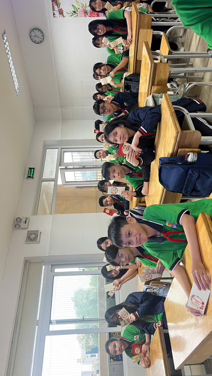 Bên cạnh đó, hoạt động “Trao lời chúc – Nhận yêu thương” đã tạo nên những phút giây đầy cảm xúc. Các bạn viết lời chúc lên những tấm thiệp nhỏ rồi bí mật gửi cho nhau. Có lời chúc học giỏi, có lời chúc mạnh khỏe, có cả những lời cảm ơn vì đã cùng nhau đồng hành suốt học kỳ qua. Những điều tưởng chừng nhỏ bé ấy lại làm nên sợi dây gắn kết bền chặt của tập thể.