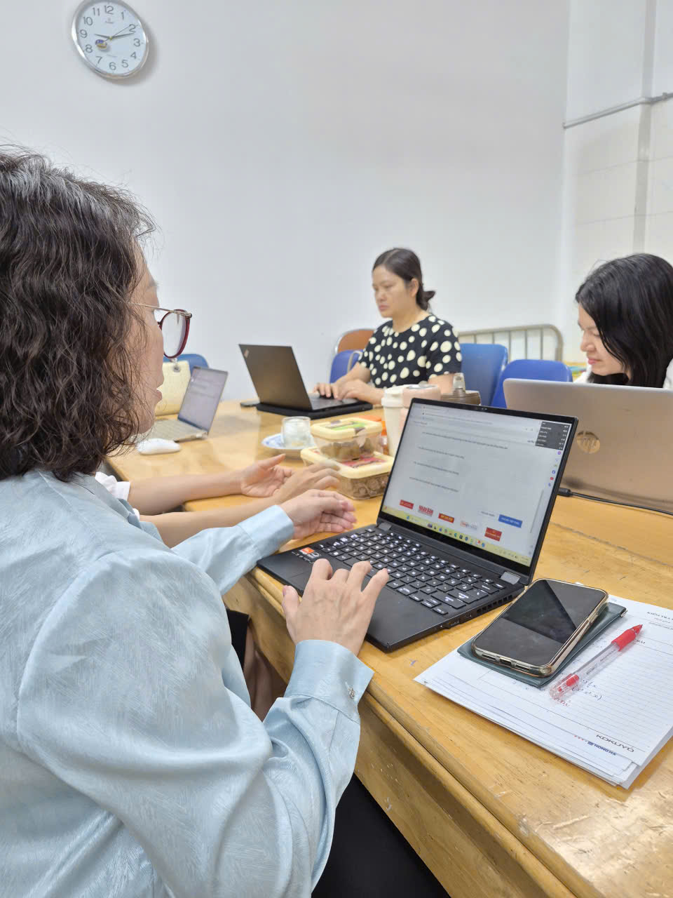 Hình ảnh các CBGV-NV trong nhà trường tích cực tham gia làm bài dự thi trực tuyến.