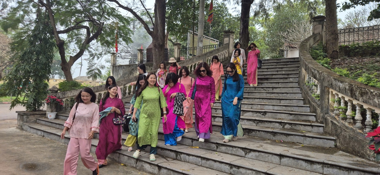 Trong sắc xuân dịu dàng, hình ảnh các cô giáo duyên dáng trong tà áo dài truyền thống đã làm cho hành trình thêm phần rực rỡ và trang nhã. Những bước chân nhẹ nhàng, nụ cười tươi tắn và sự hào hứng hiện rõ trên từng gương mặt đã tạo nên một bức tranh du xuân đầy sức sống. Tà áo dài không chỉ tôn lên vẻ đẹp thanh lịch của người phụ nữ Việt Nam mà còn góp phần làm cho chuyến đi thêm ý nghĩa trong những ngày tháng Ba yêu thương.