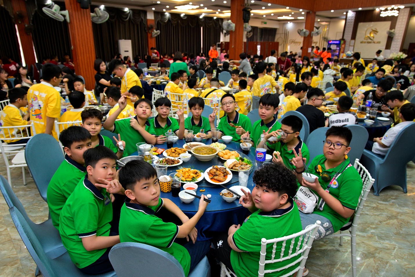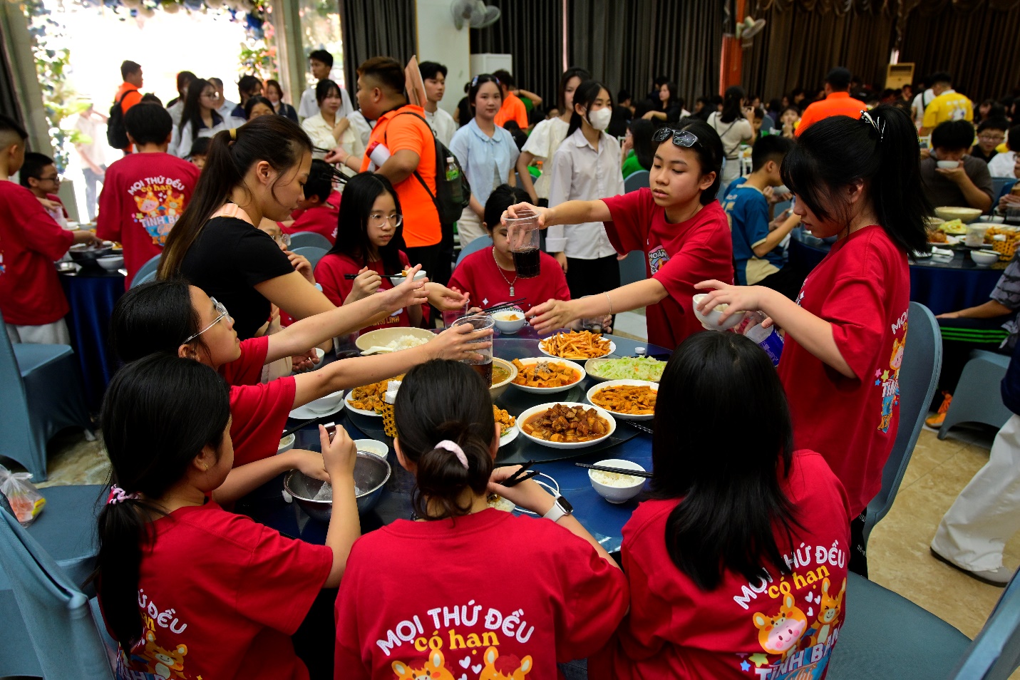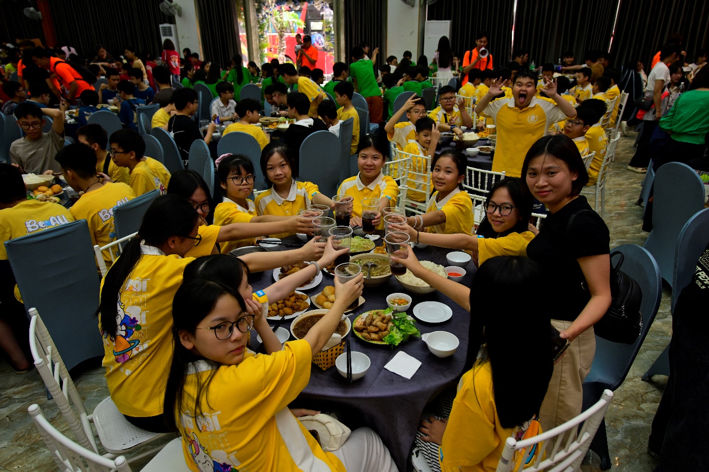 Sau buổi tham quan, đoàn dừng chân tại nhà hàng để nghỉ ngơi và ăn trưa. Không còn sự nghiêm túc của lớp học, các em trở nên gần gũi hơn, tự nhiên hơn trong những câu chuyện, những tiếng cười.