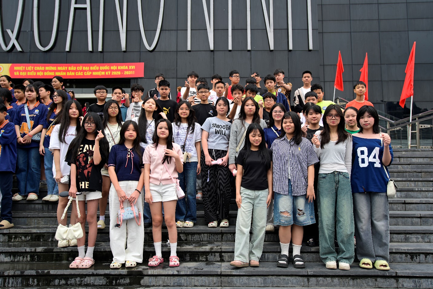 5 giờ 30 phút sáng, khi phố phường Hà Nội còn ngái ngủ, sân trường THCS Hoàng Hoa Thám đã rộn ràng tiếng nói cười. Những gương mặt háo hức, những chiếc balo nhỏ xinh, những lời dặn dò của thầy cô… tất cả hòa quyện tạo nên một không khí đầy năng lượng.