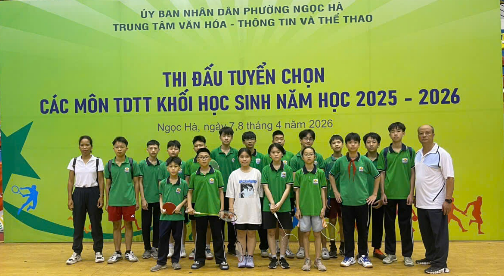 Trong không khí sôi nổi của phong trào rèn luyện thể dục thể thao, sáng ngày 07/4/2026 Hội thi Thể thao khối học sinh phường Ngọc Hà năm 2026 đã diễn ra với sự tham gia hào hứng của nhiều trường học trên địa bàn. Hòa chung không khí đó, học sinh Trường THCS Hoàng Hoa Thám đã tích cực tham gia và thể hiện tinh thần thi đấu nhiệt huyết, đoàn kết và đầy quyết tâm. Đây là sân chơi thể thao bổ ích, góp phần rèn luyện sức khỏe, nâng cao tinh thần đoàn kết và phát triển toàn diện cho học sinh.