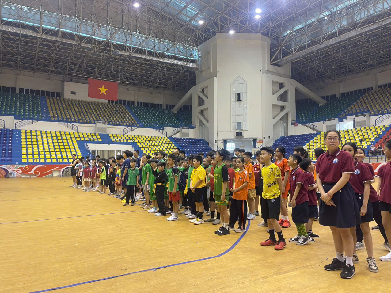 Toàn cảnh khối học sinh chuẩn bị trước khi thi đấu