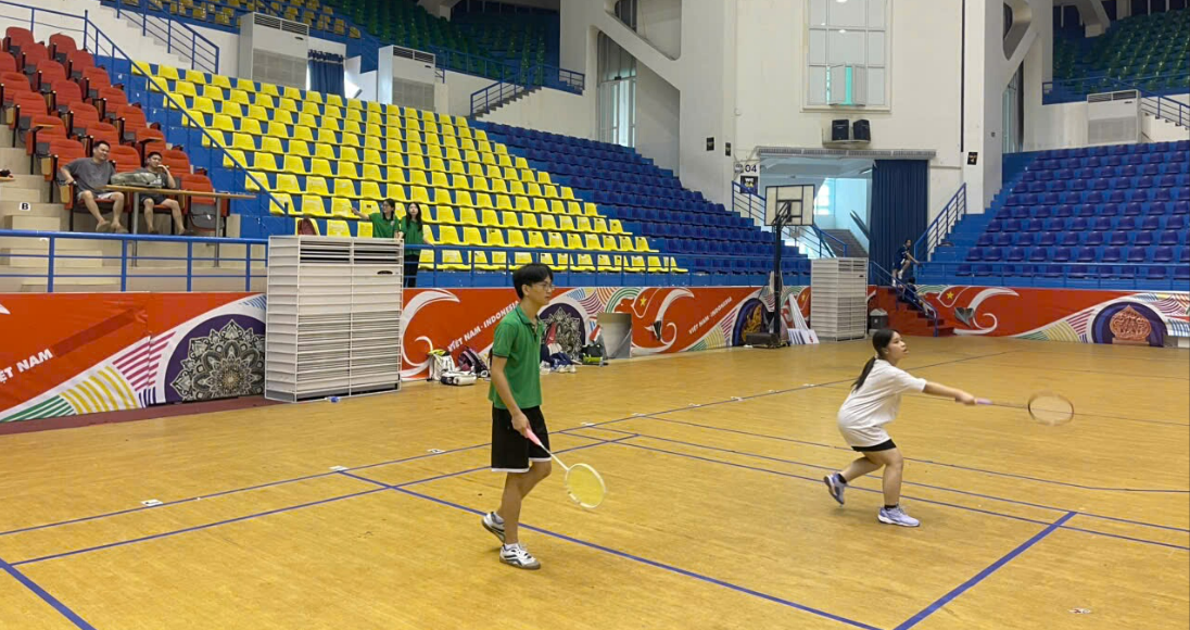 Phần thi đấu môn cầu lông đôi nam nữ của HS Nguyễn Đình Chí Dũng – 8A4 và Hoàng Bảo Anh – 8A1.