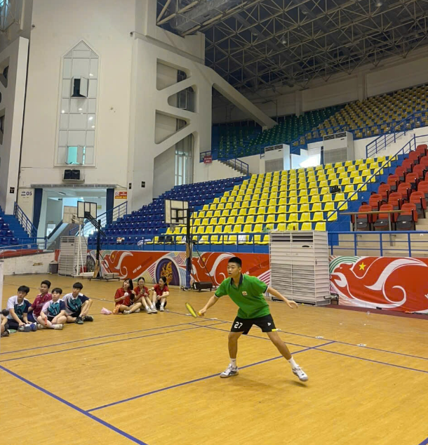 Phần thi đơn nam cầu lông của học sinh Nam Phong – 8A7 và Thành Phong