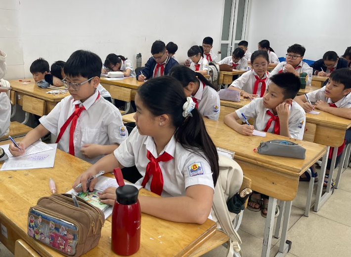 Không khí sôi nổi khi cả lớp tham gia trò chơi tương tác "Đi tìm kho báu" để khám phá các kiến thức về bảo vệ môi trường