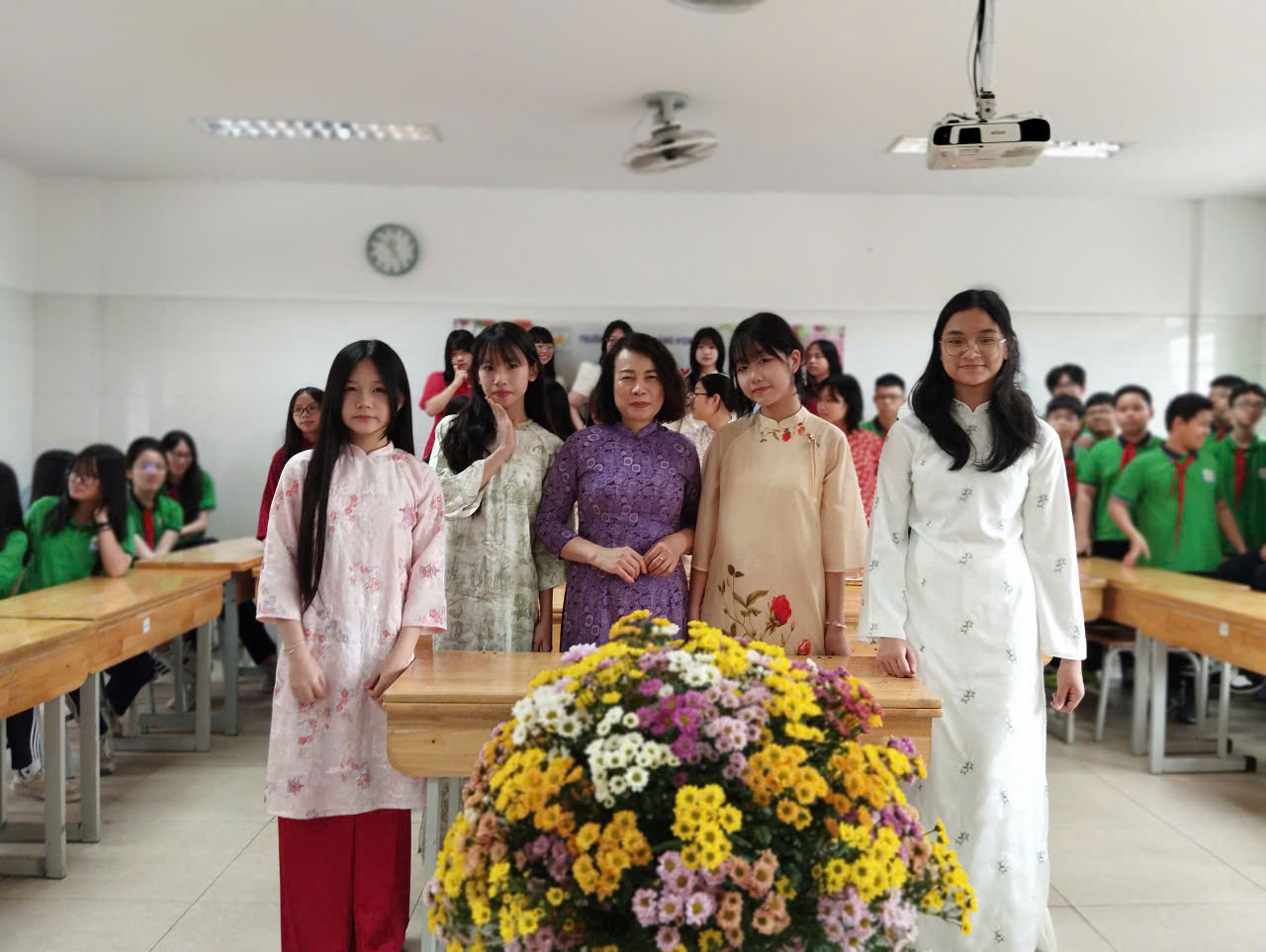 Đặc biệt, trong buổi sinh hoạt lớp chào mừng 8/3, tập thể 7A1 đã gửi tặng những tấm thiệp xinh xắn cùng lời chúc yêu thương tới các bà, các mẹ và cô giáo. Những lời tri ân giản dị nhưng chân thành đã khiến không khí lớp học trở nên ấm áp và xúc động. Nhiều bạn chia sẻ rằng, khi khoác lên mình tà áo dài, các bạn cảm nhận rõ hơn niềm tự hào và trách nhiệm của thế hệ trẻ trong việc trân trọng, tôn vinh người phụ nữ.