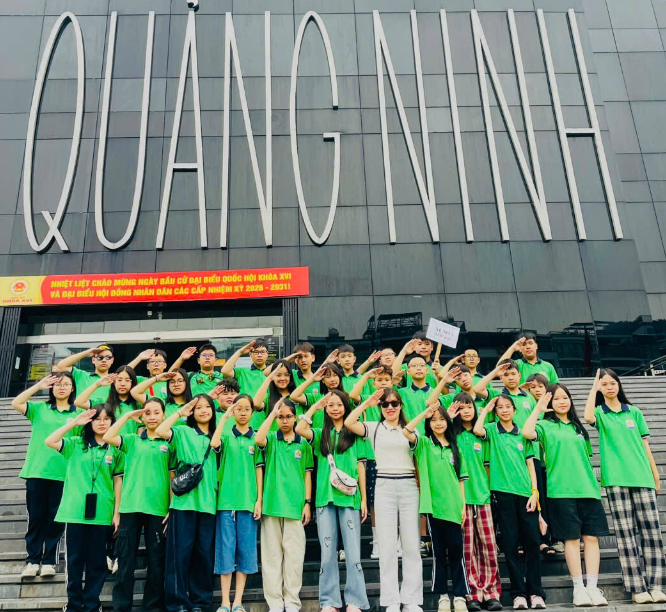 Từ 5 giờ sáng, khi thành phố còn đang chìm trong giấc ngủ, chúng em đã háo hức tập trung đầy đủ để lên xe xuất phát. Trên xe, ai cũng rộn ràng, mong chờ những điều thú vị phía trước. Đến Bảo tàng Quảng Ninh, cả lớp đã cùng cô giáo chủ nhiệm chụp một bức ảnh tập thể thật đẹp để lưu giữ kỷ niệm.