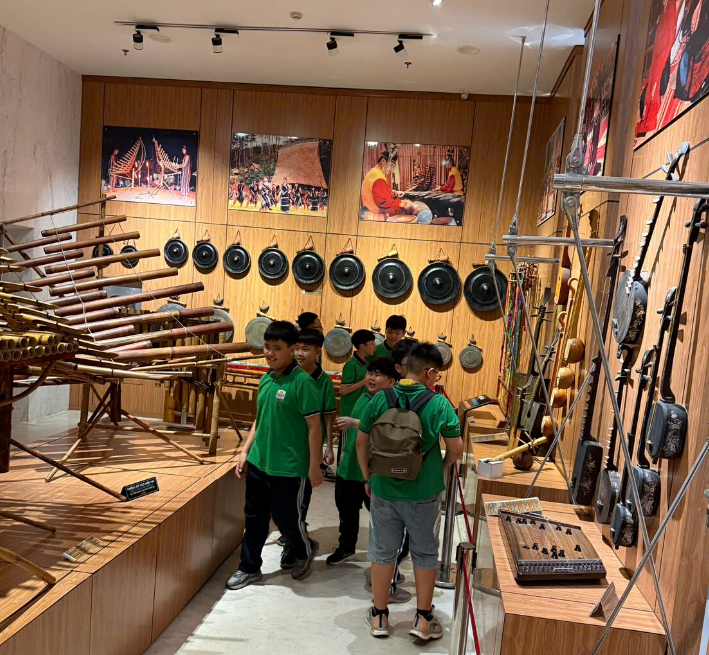 Các bạn tìm hiểu các loại nhạc cụ tại khu vực tầng 2 của bảo tàng